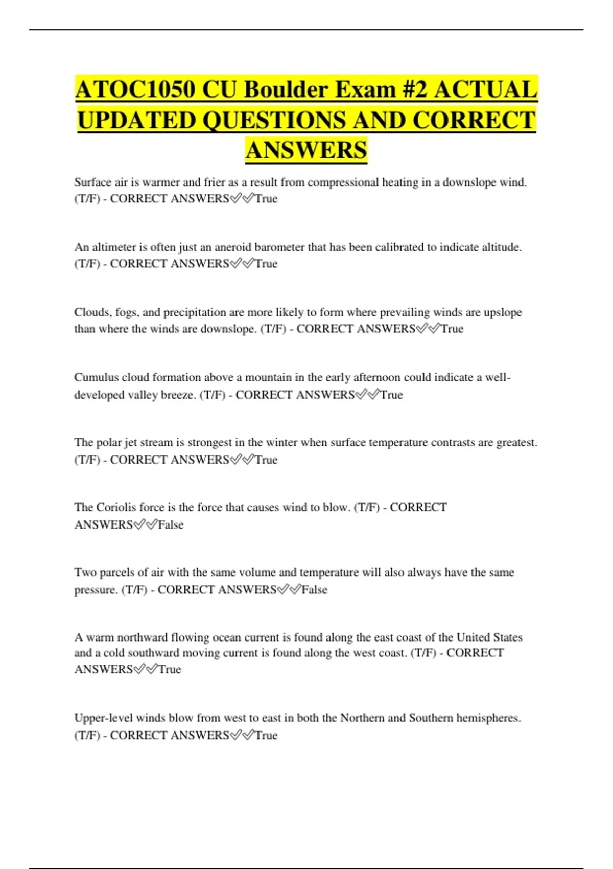 than where the winds are downslope. (T/F) - CORRECT ANSWERS✅✅True