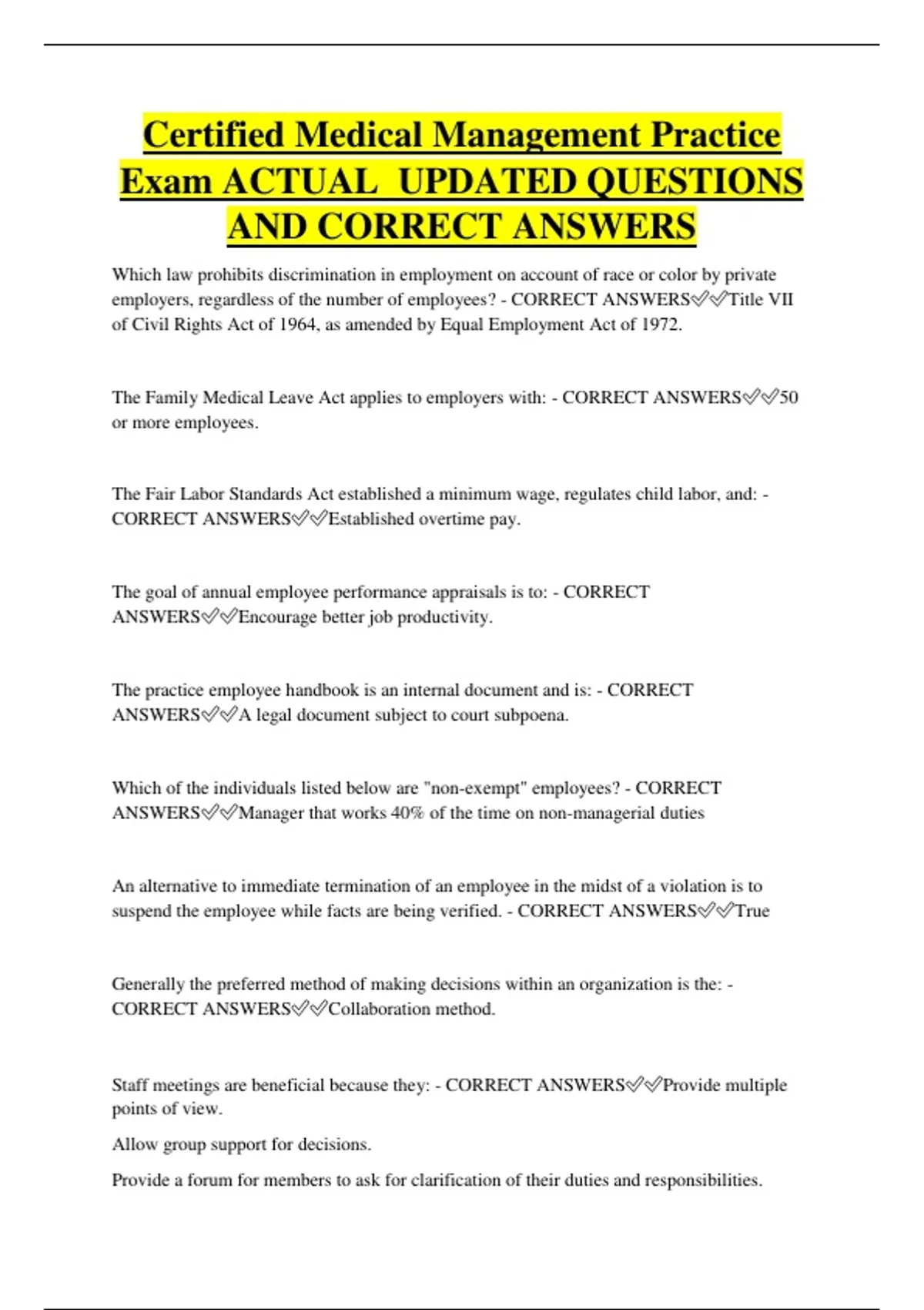 Staff meetings are beneficial because they: - CORRECT ANSWERS✅✅Provide multiple