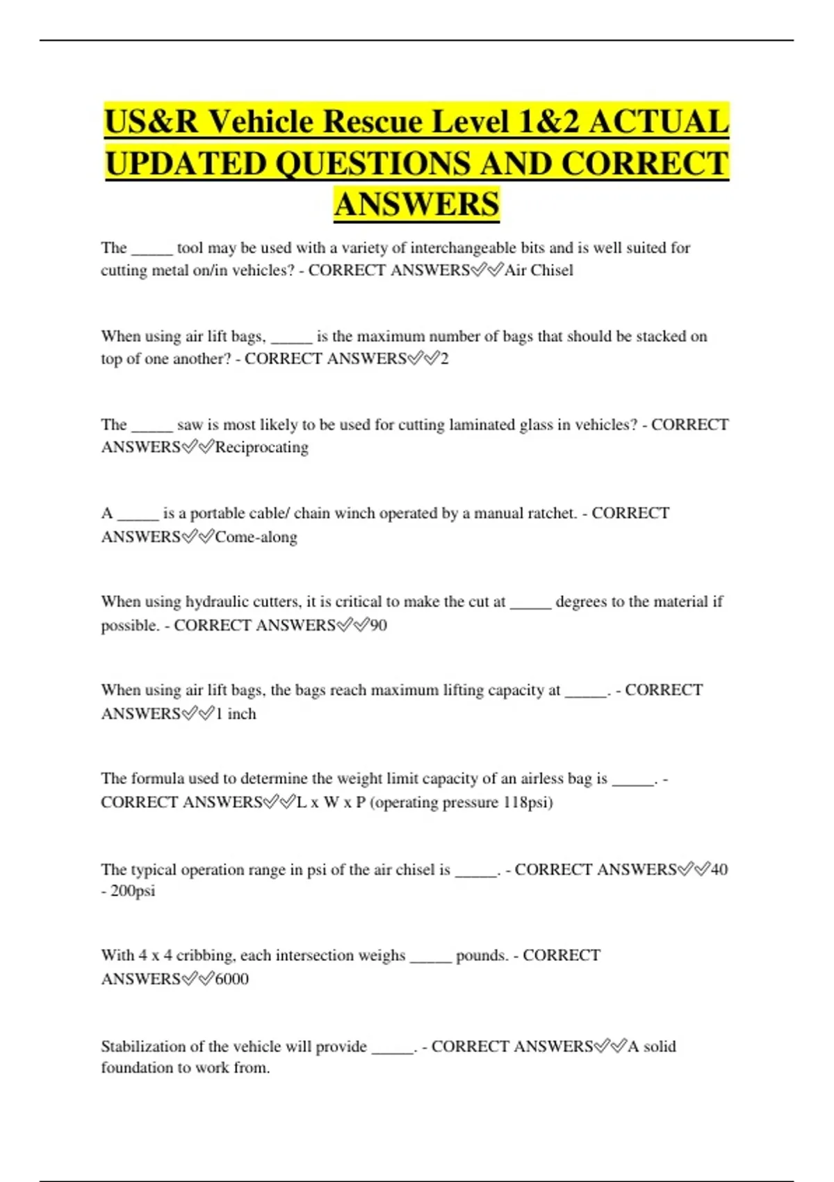 UPDATED QUESTIONS AND CORRECT
