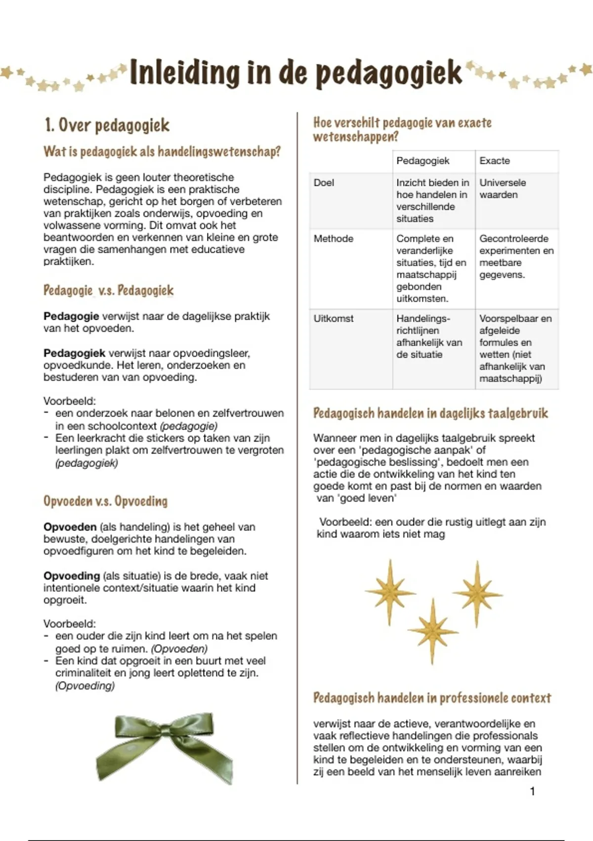 1. Over pedagogiek Hoe verschilt pedagogie van exacte