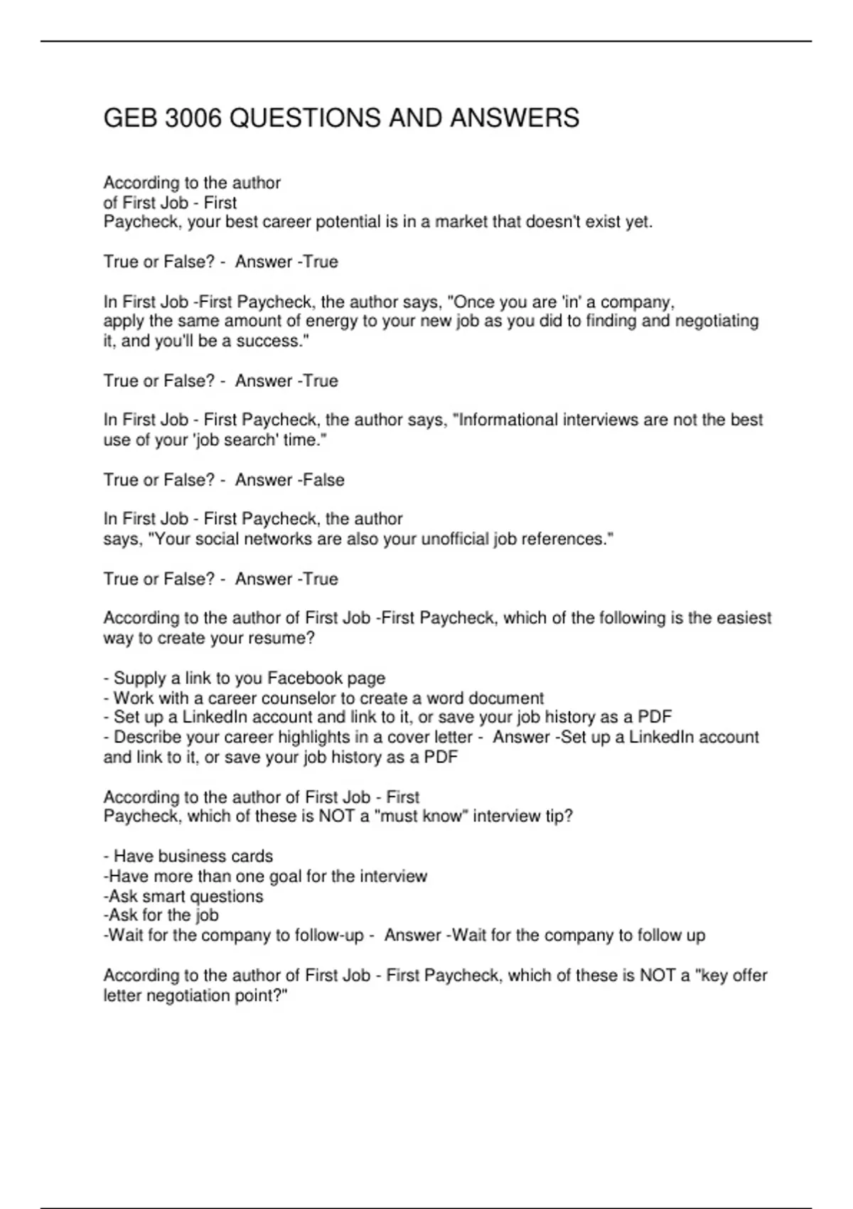 GEB 3006 QUESTIONS AND ANSWERS