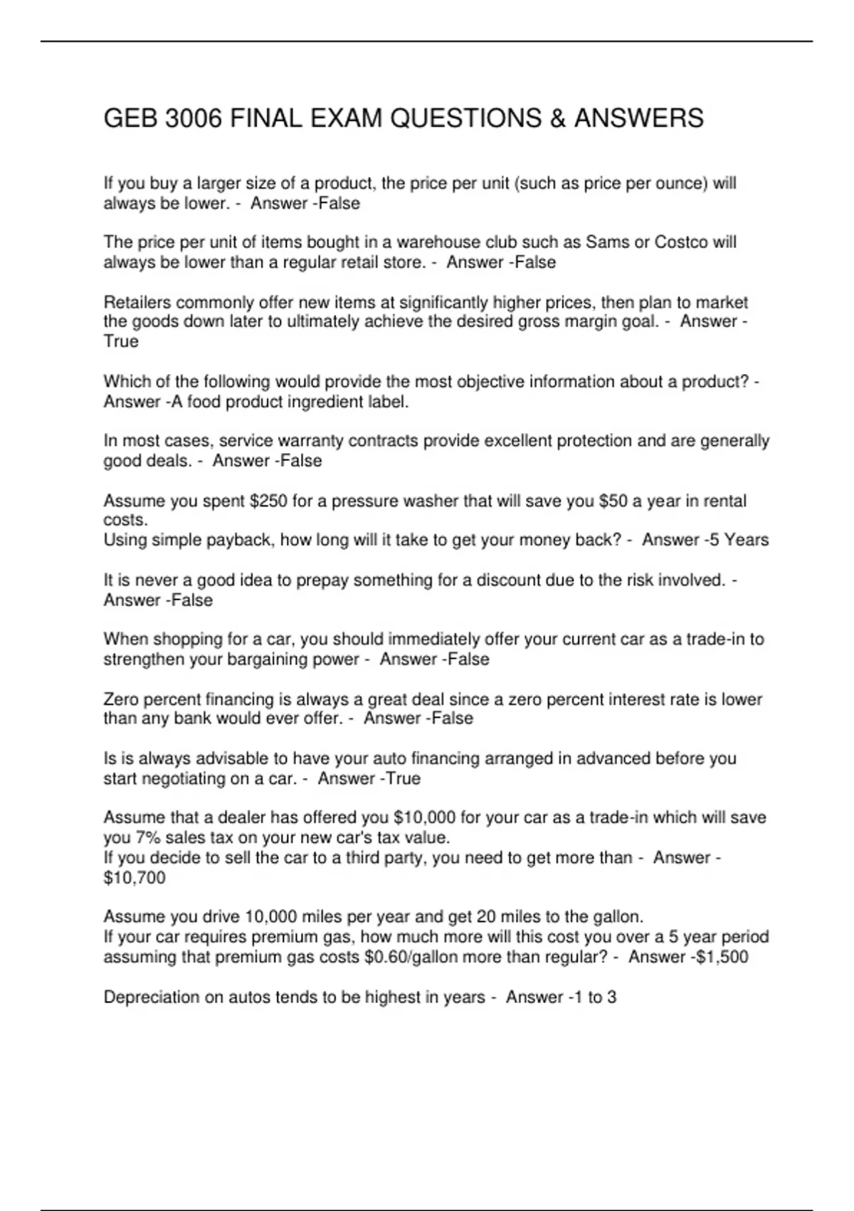 GEB 3006 FINAL EXAM QUESTIONS & ANSWERS