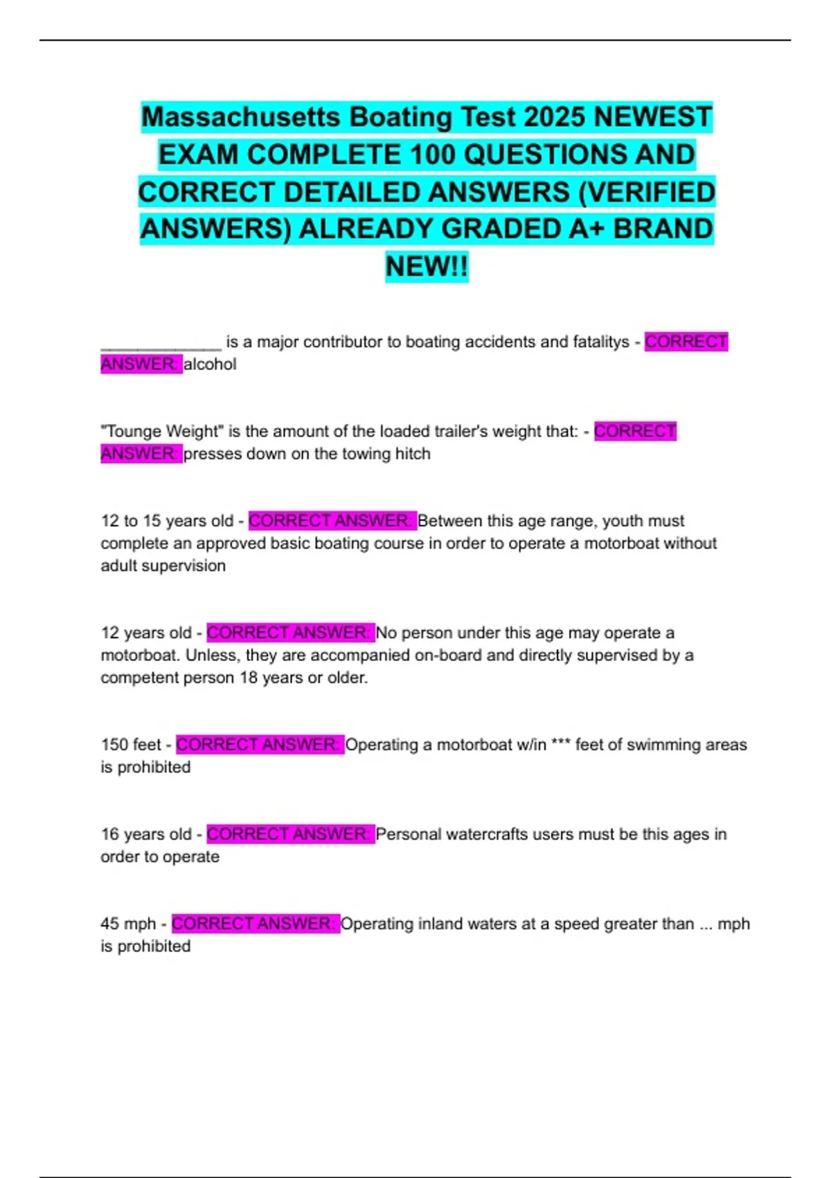 CORRECT DETAILED ANSWERS (VERIFIED