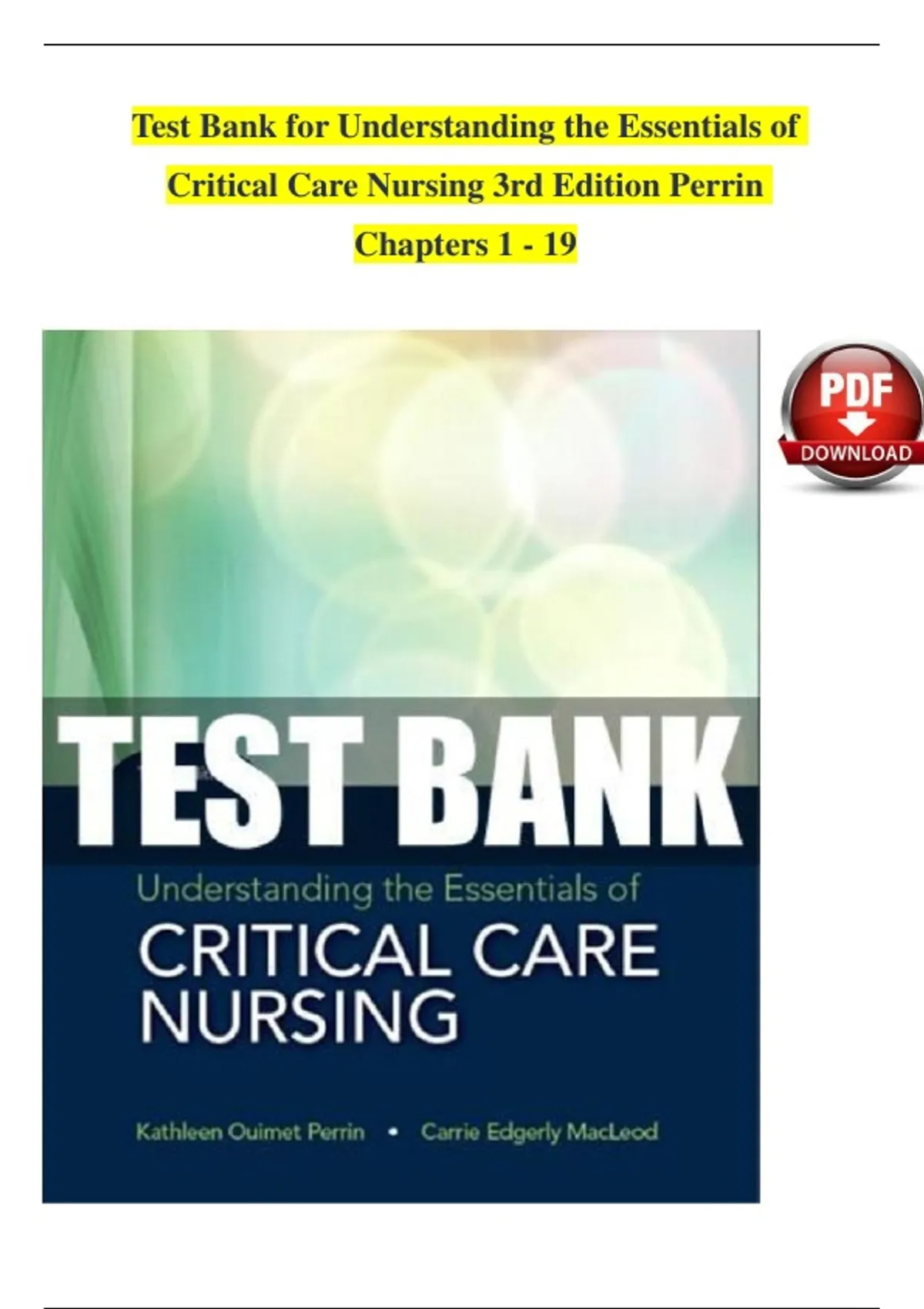 , TEST BANK FOR UNDERSTANDING THE ESSENTIALS OF CRITICAL CARE NURSING
