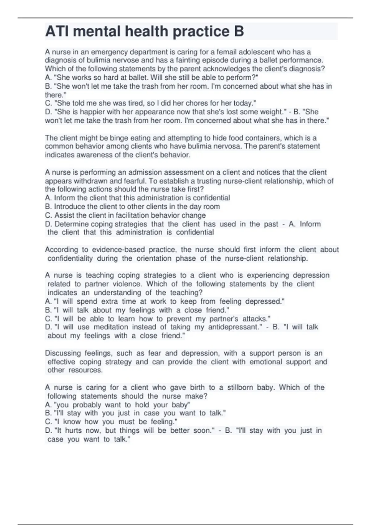 , ATI mental health practice B