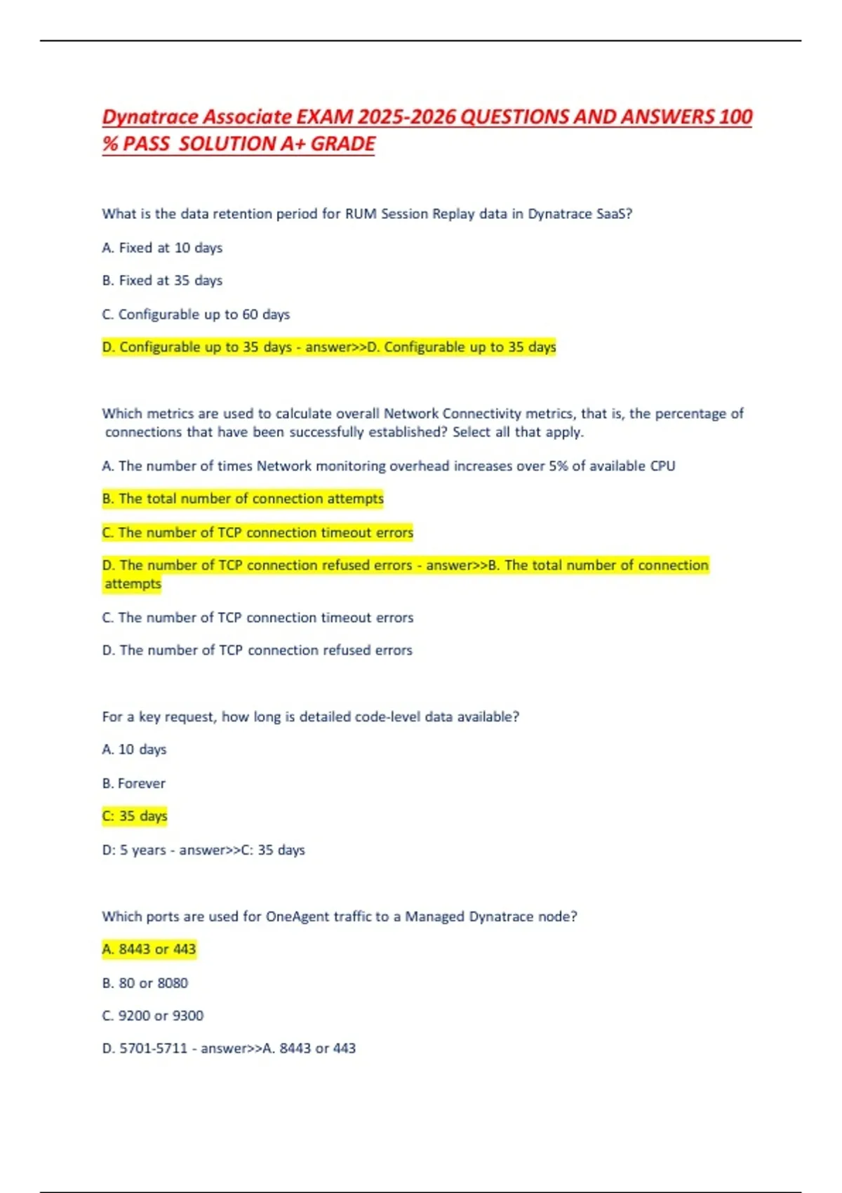 Dynatrace Associate EXAM 2025-2026 QUESTIONS AND ANSWERS 100