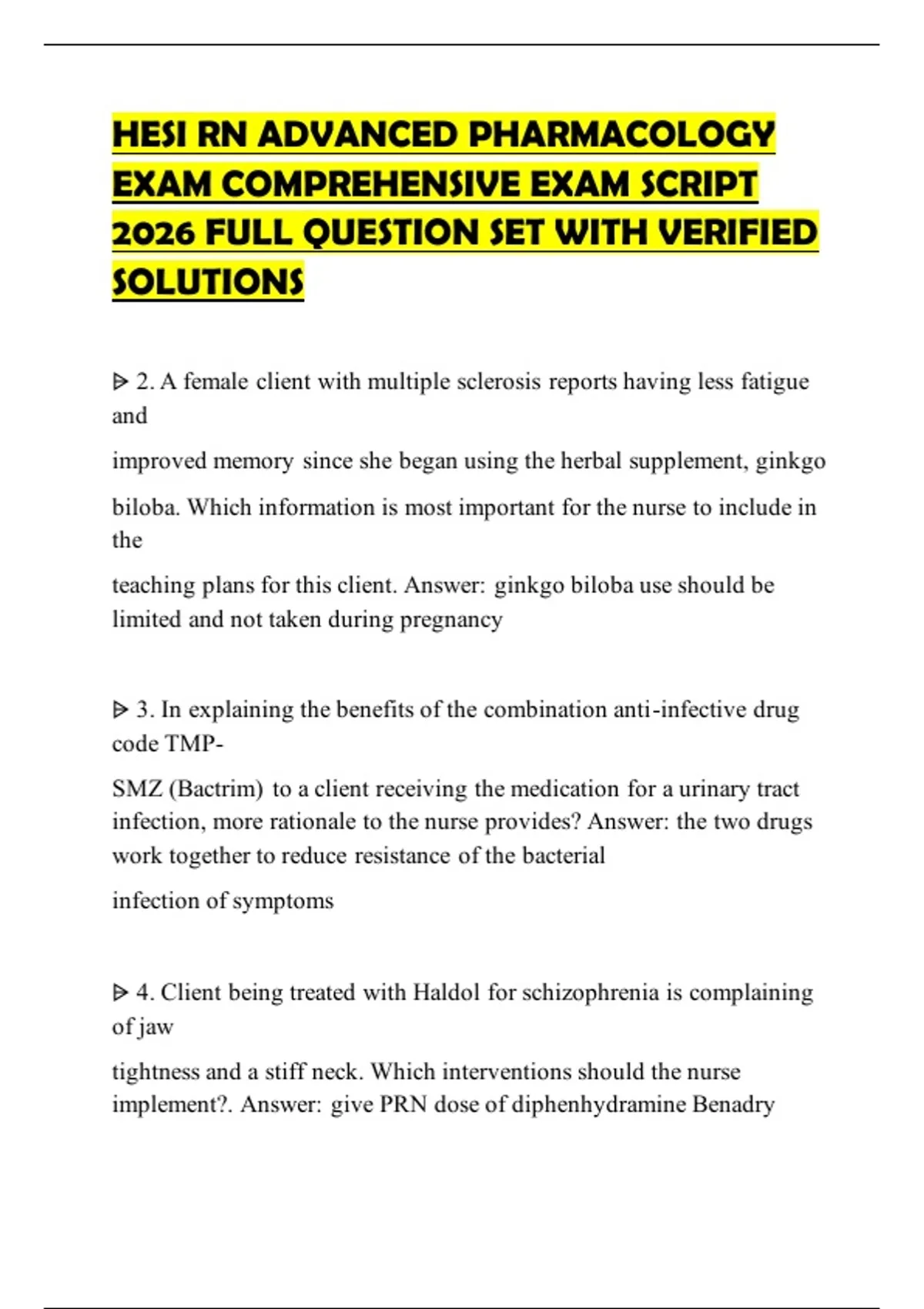 HESI RN ADVANCED PHARMACOLOGY EXAM COMPREHENSIVE EXAM SCRIPT 2026 FULL QUESTION SET WITH VERIFIED SOLUTIONS