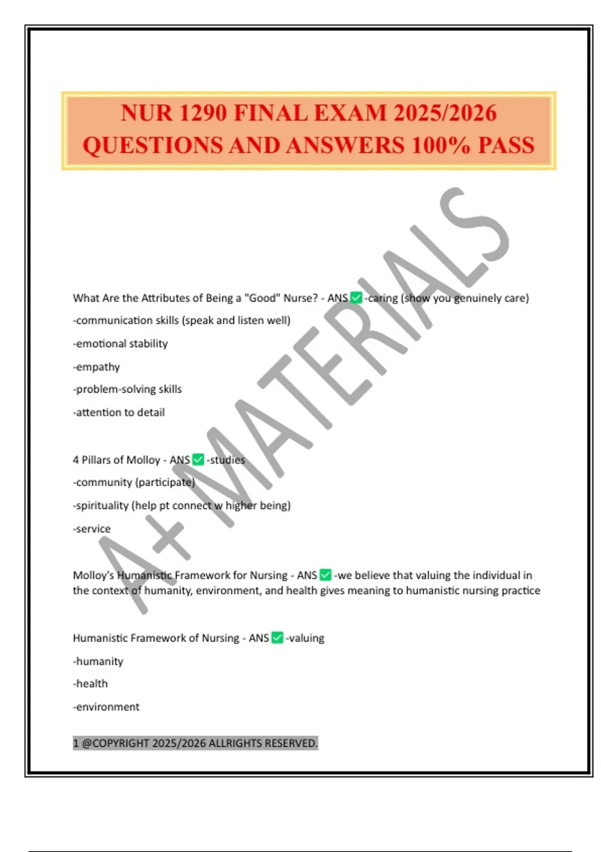 NUR 1290 FINAL EXAM 2025/2026
