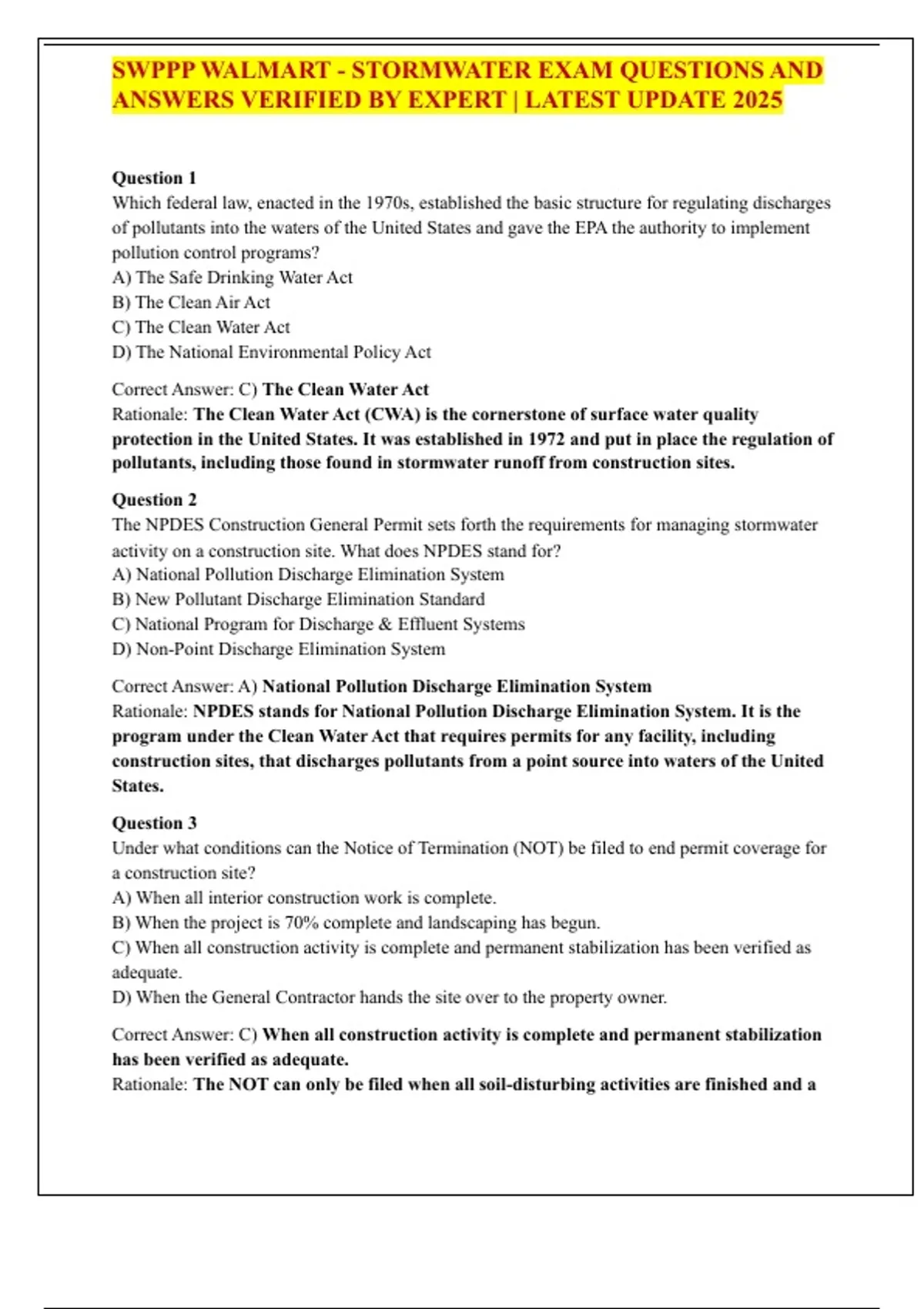 Rationale: The SWPPP is a formal, legally required document. The implementation