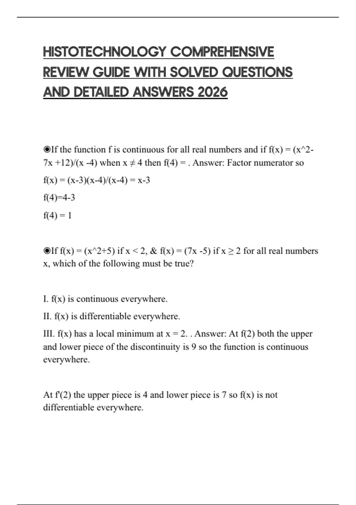 III. f(x) has a local minimum at x = 2. . Answer: At f(2) both the upper