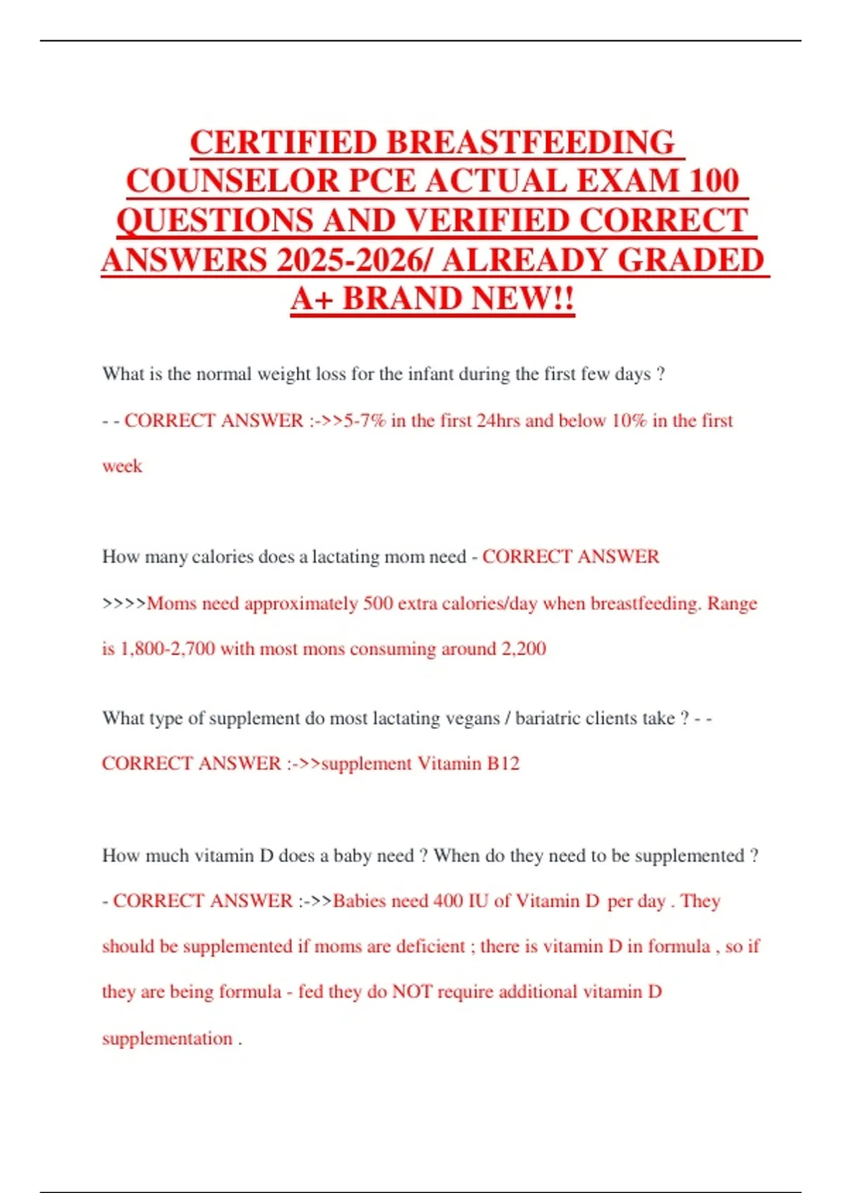 - CORRECT ANSWER :->>Babies need 400 IU of Vitamin D per day . They