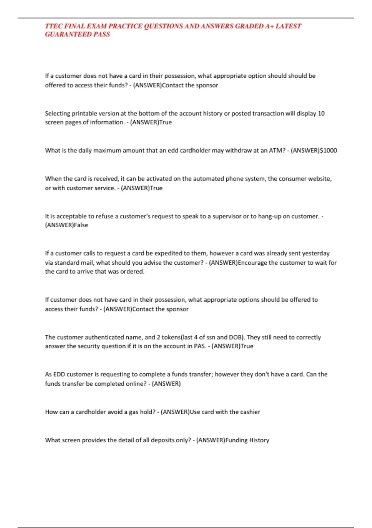 TTEC FINAL EXAM PRACTICE QUESTIONS AND ANSWERS GRADED A+ LATEST GUARANTEED PASS