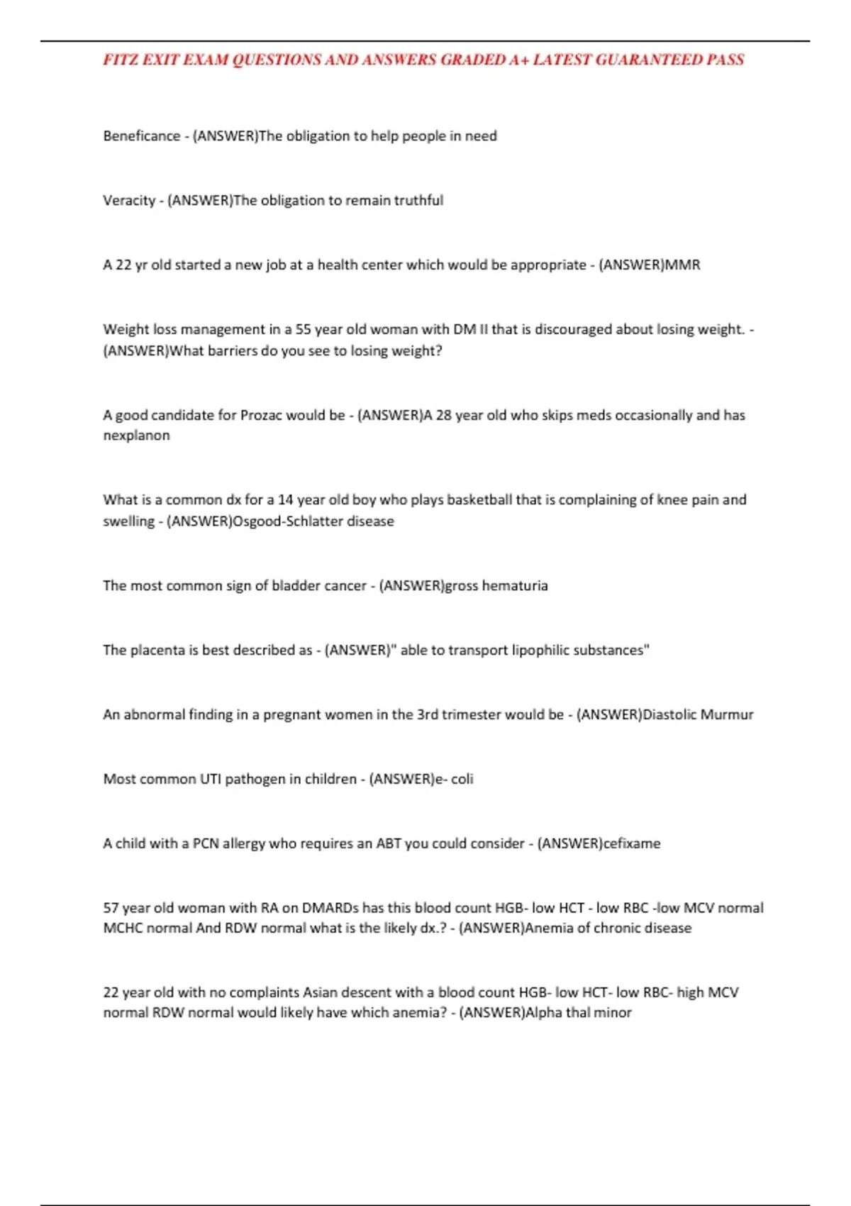 , FITZ EXIT EXAM QUESTIONS AND ANSWERS GRADED A+ LATEST GUARANTEED PASS