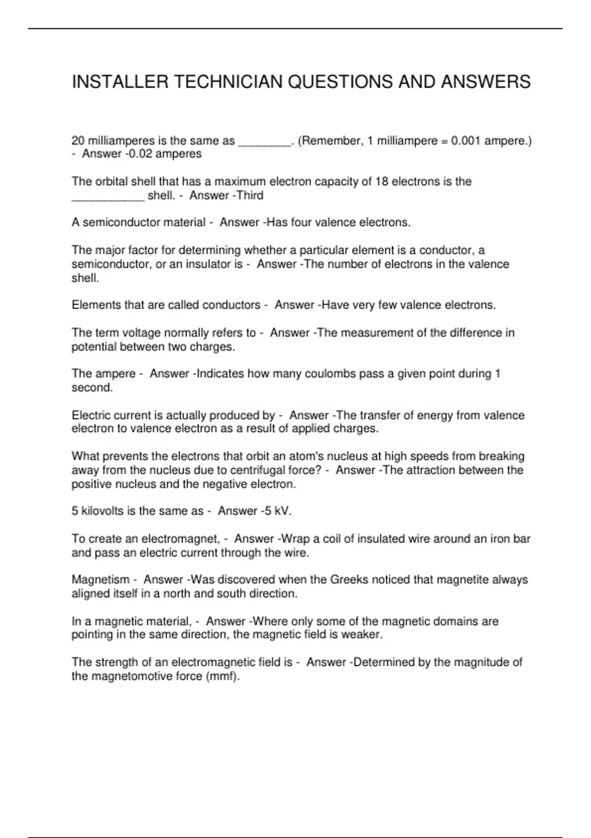 INSTALLER TECHNICIAN QUESTIONS AND ANSWERS