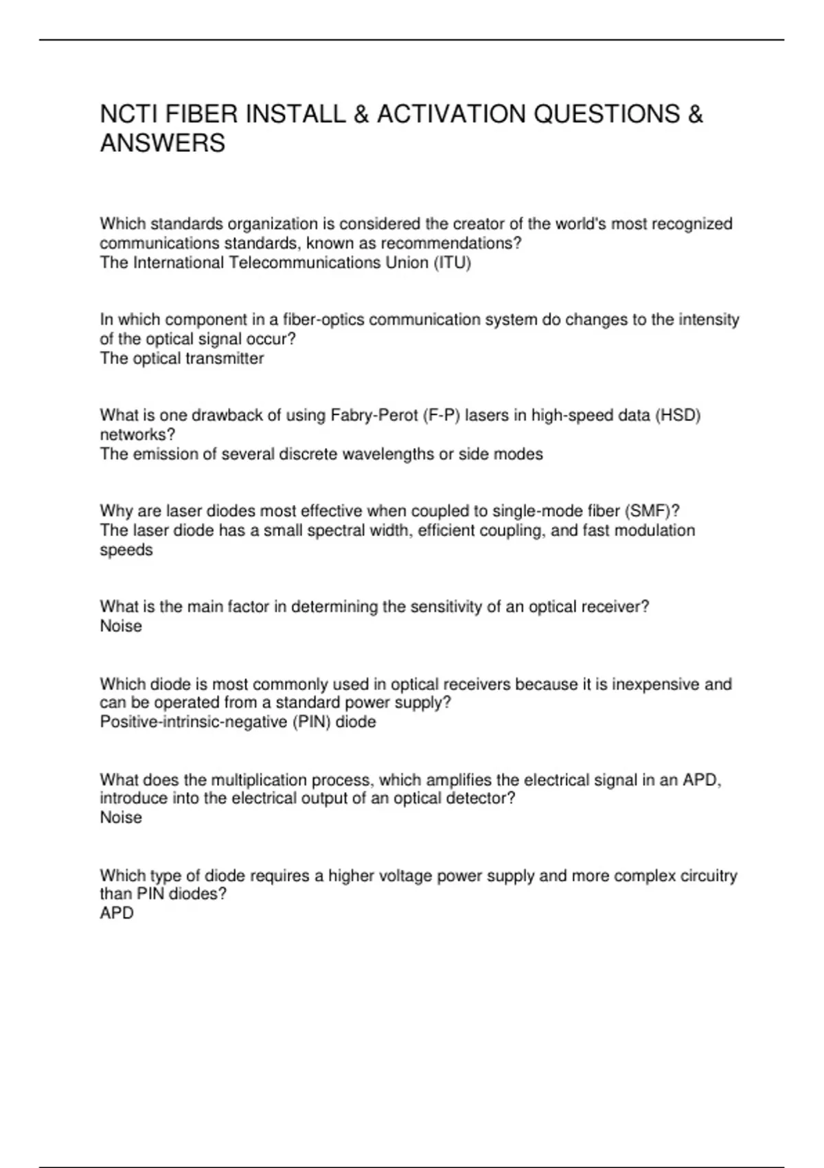 NCTI FIBER INSTALL & ACTIVATION QUESTIONS & ANSWERS