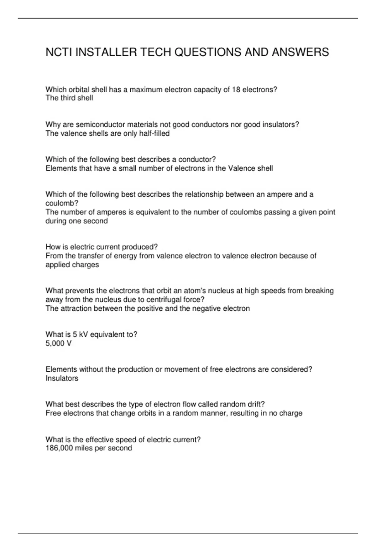 NCTI INSTALLER TECH QUESTIONS AND ANSWERS