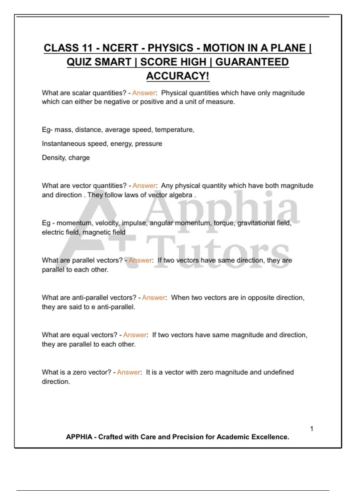 CLASS 11 - NCERT - PHYSICS - MOTION IN A PLANE | QUIZ SMART | SCORE HIGH | GUARANTEED ACCURACY!
