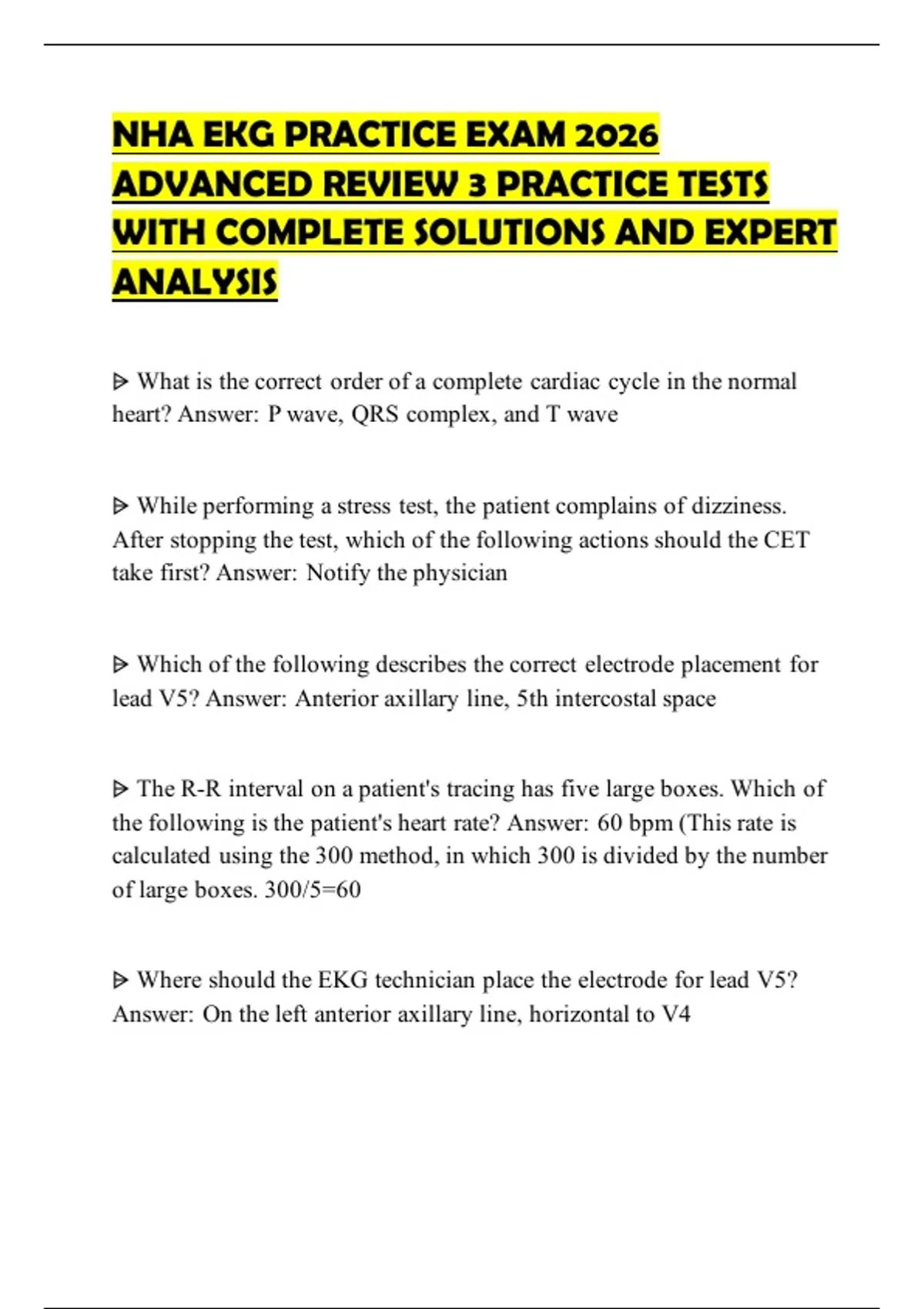 NHA EKG PRACTICE EXAM 2026 ADVANCED REVIEW 3 PRACTICE TESTS WITH COMPLETE SOLUTIONS AND EXPERT ANALYSIS