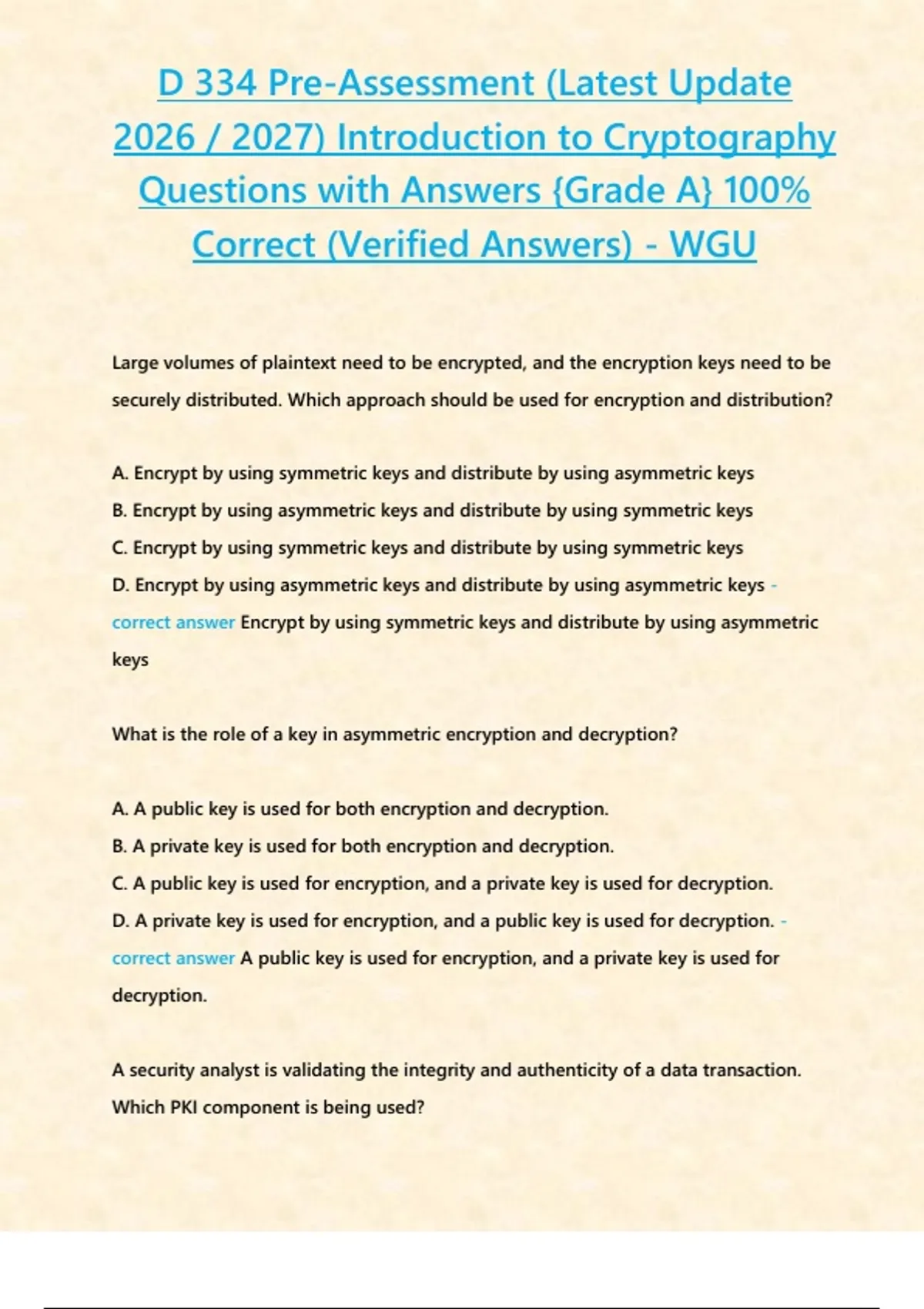 , D 334 Pre-Assessment (Latest Update