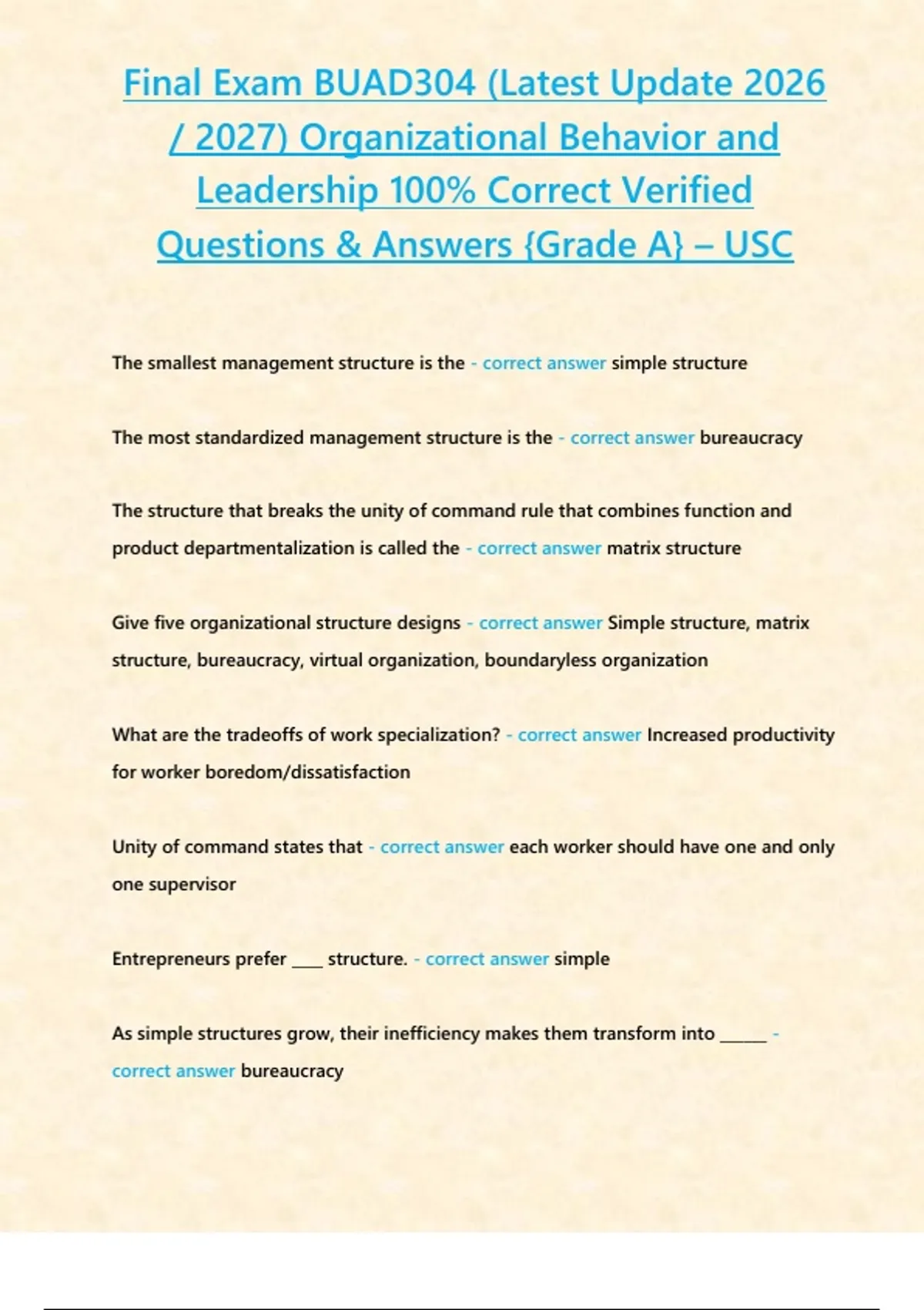 , Final Exam BUAD304 (Latest Update 2026
