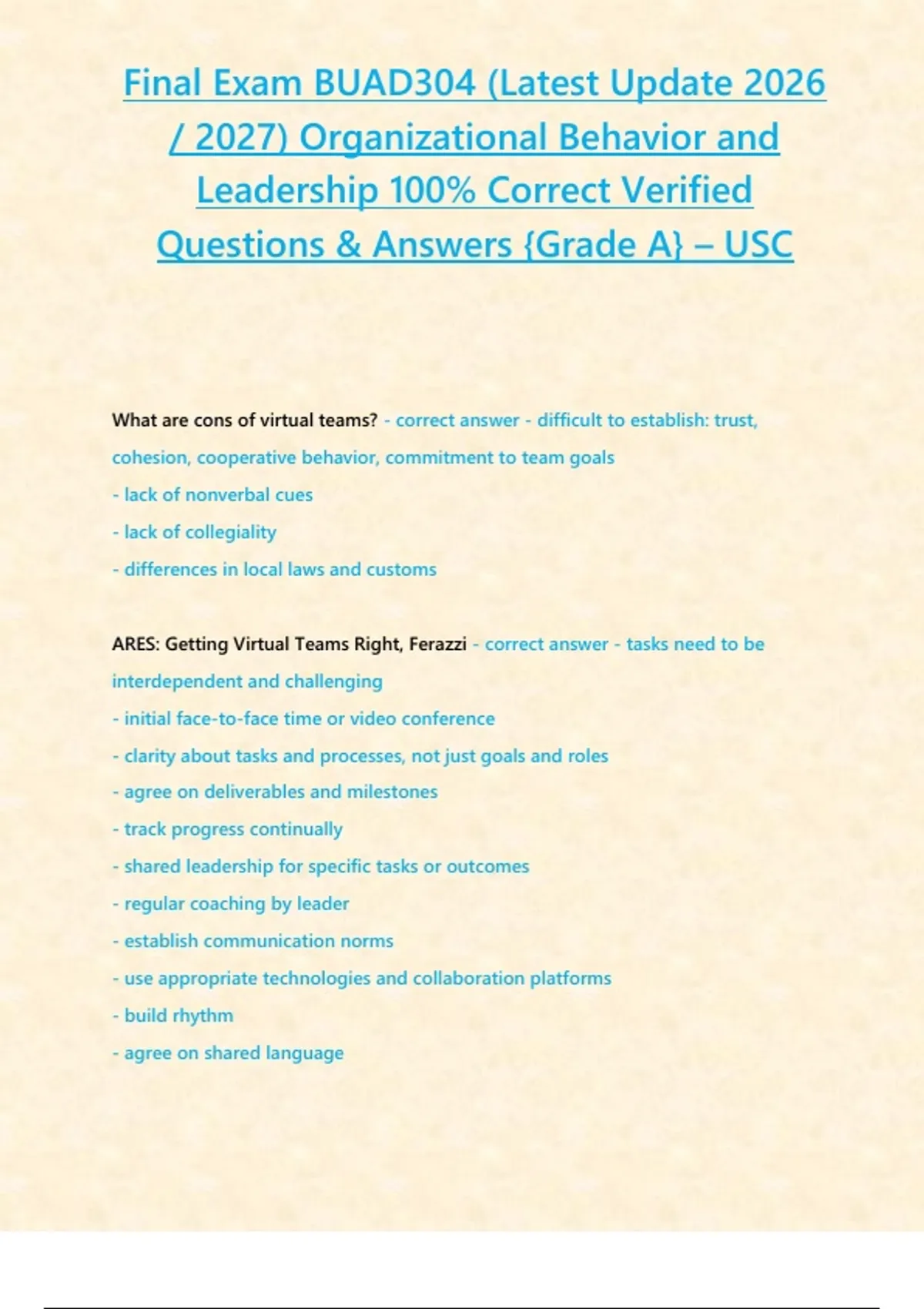 ARES: Getting Virtual Teams Right, Ferazzi - correct answer - tasks need to be
