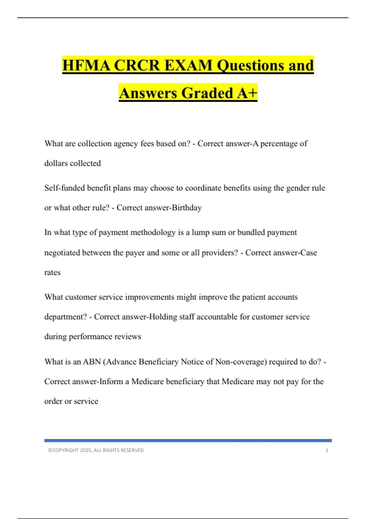 HFMA CRCR EXAM Questions and Answers Graded A+