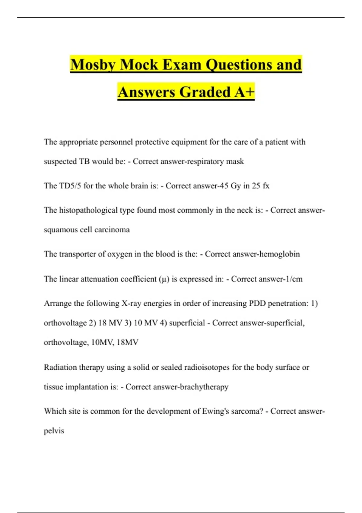 Mosby Mock Exam Questions and Answers Graded A+