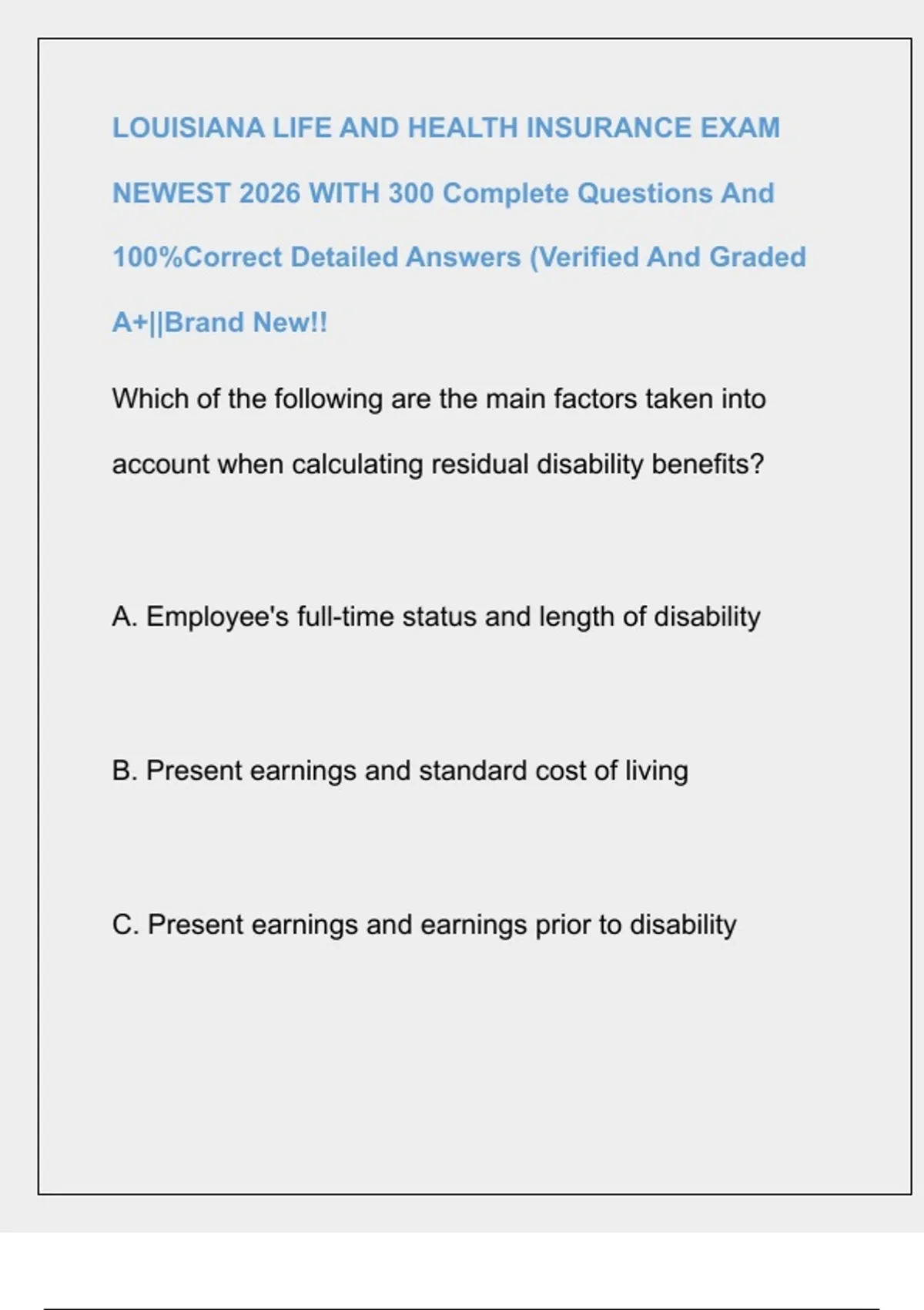 ,D. Earnings prior to disability and the length of disability -