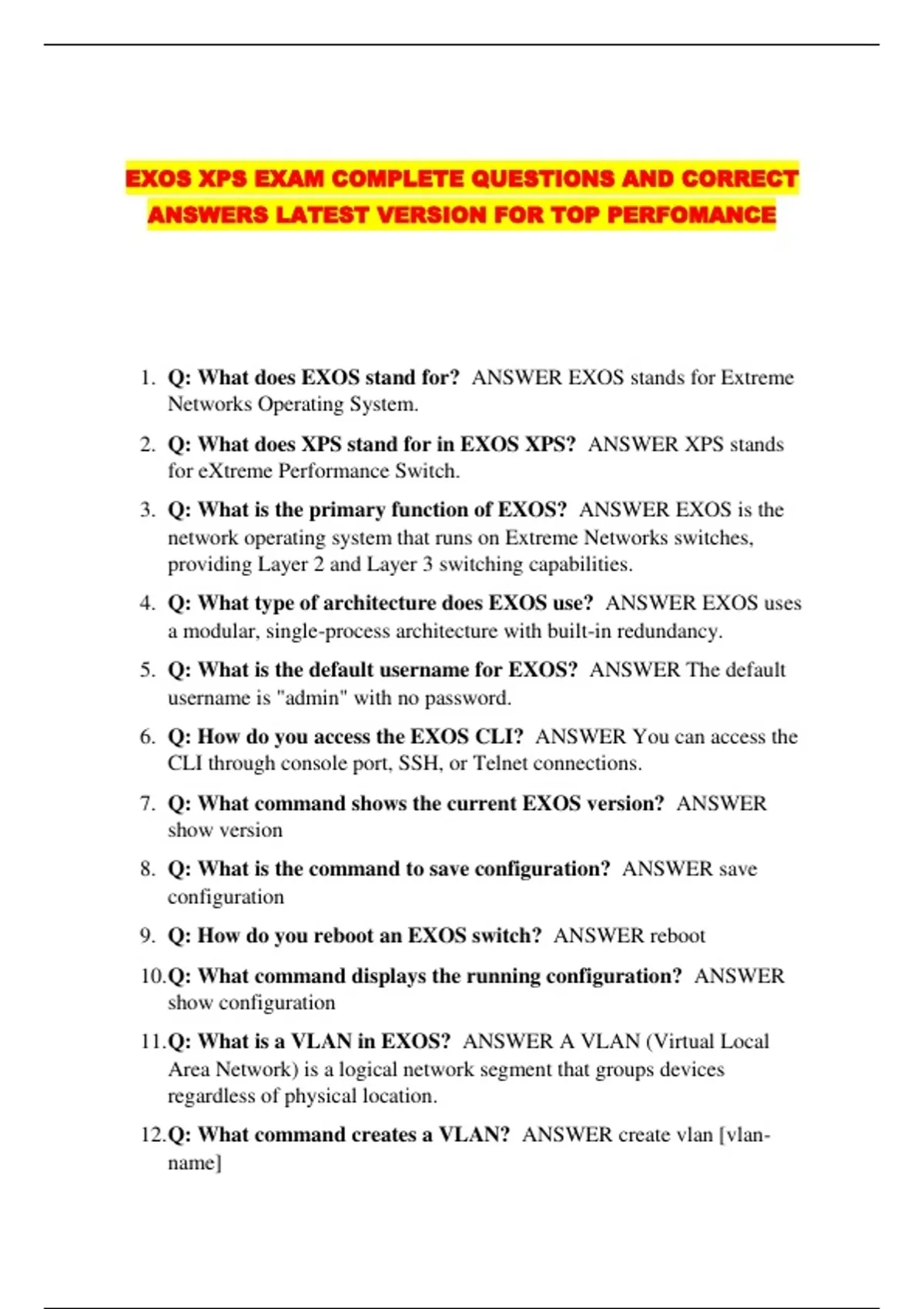 7. Q: What command shows the current EXOS version? ANSWER
