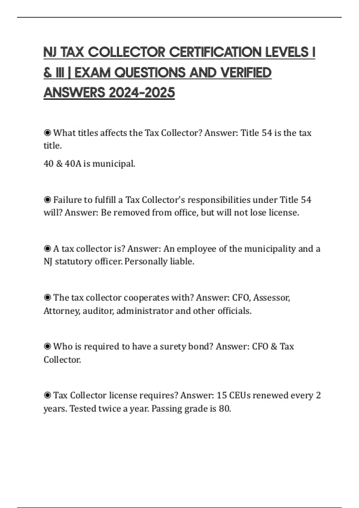 ◉ Tax Collector license requires? Answer: 15 CEUs renewed every 2