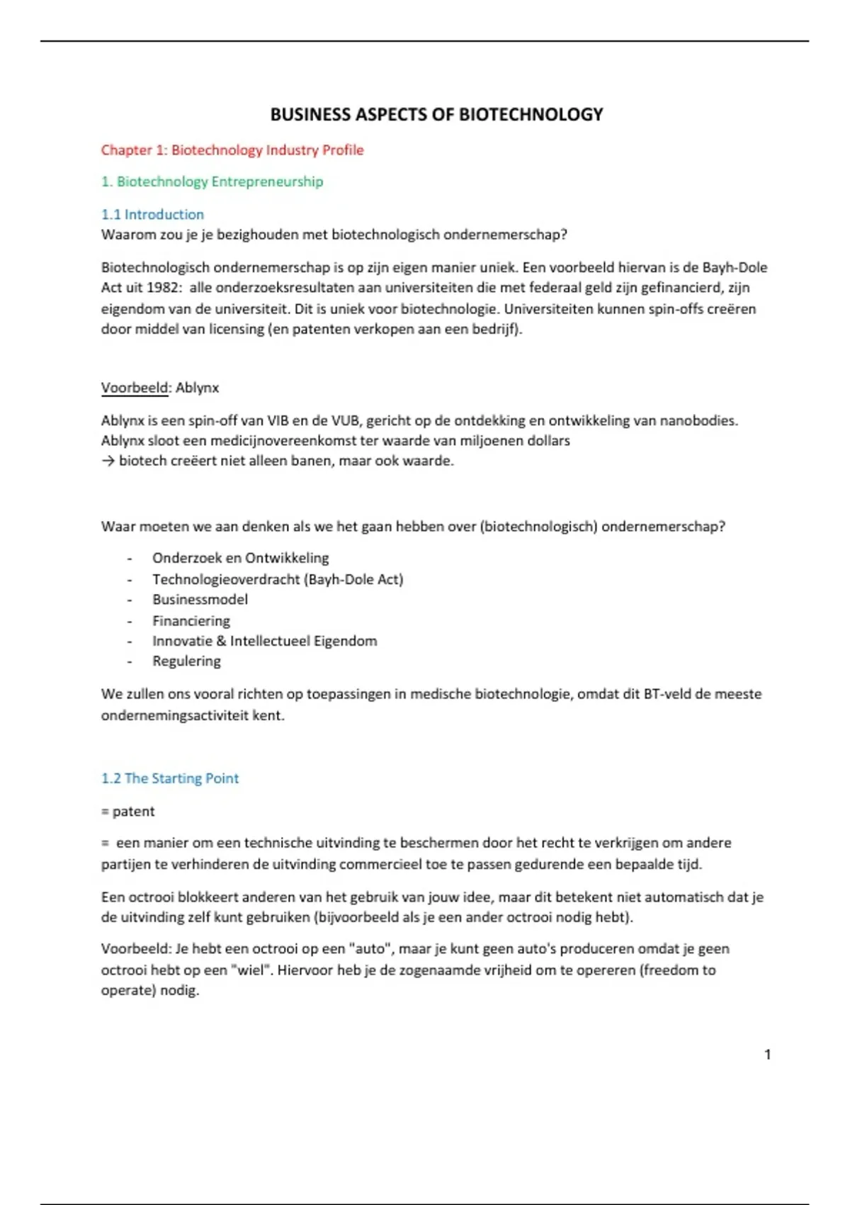 eigendom van de universiteit. Dit is uniek voor biotechnologie. Universiteiten kunnen spin-offs creëren
