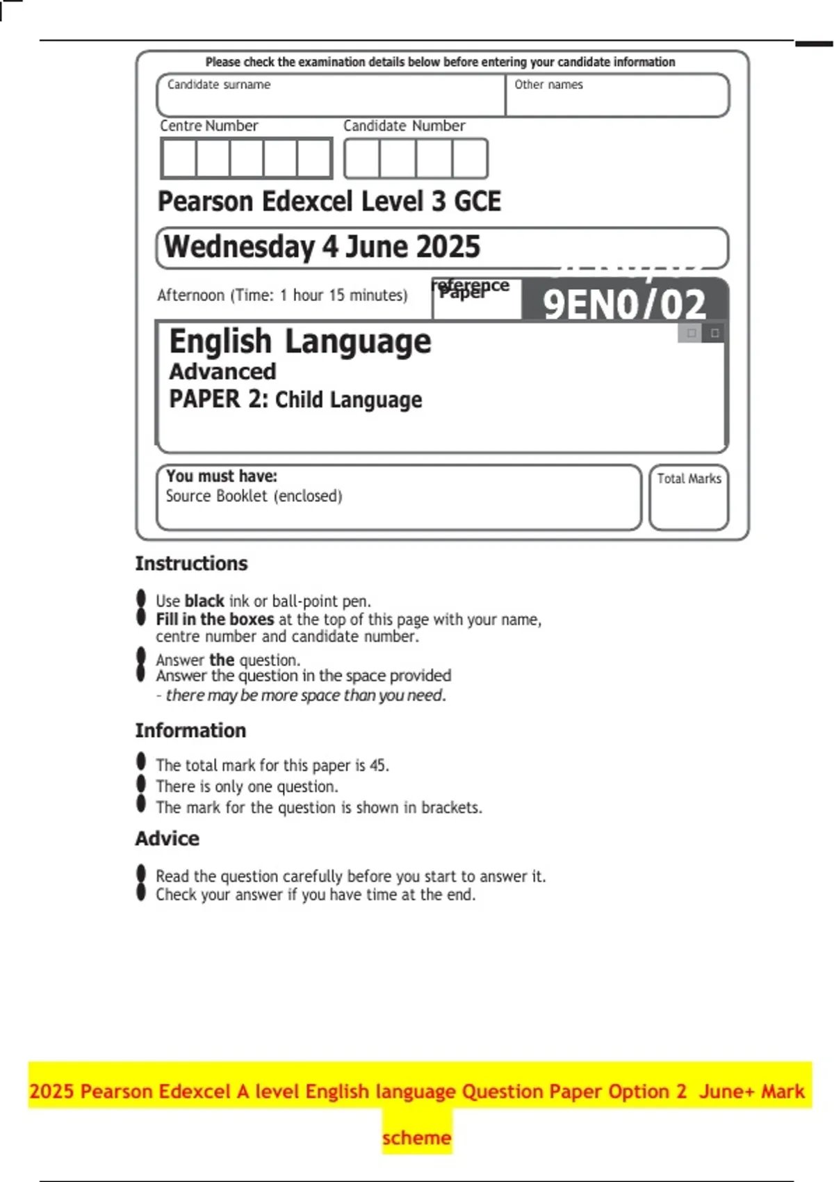 2025 Pearson Edexcel A level English language Question Paper Option 2 June+ Mark