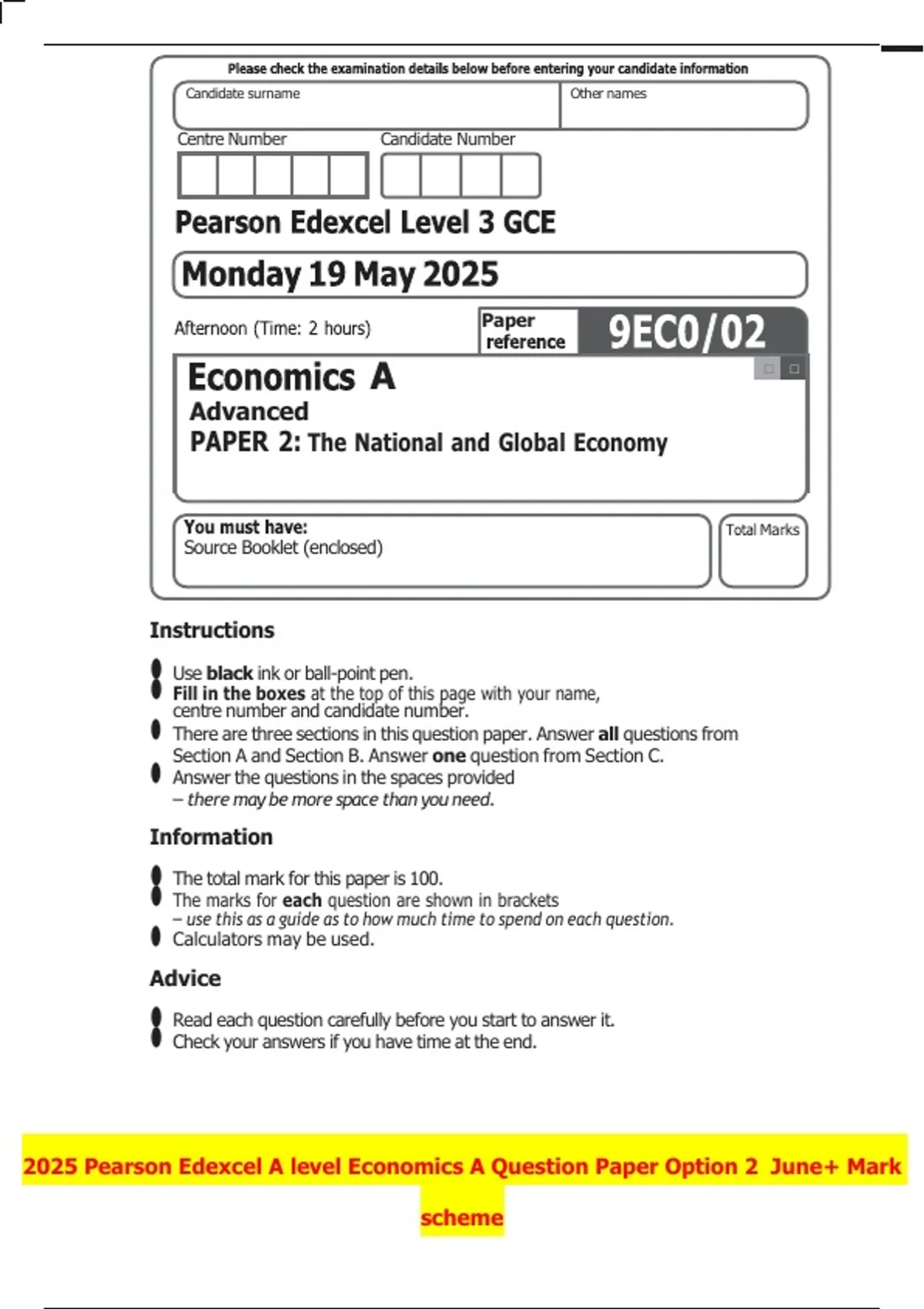 2025 Pearson Edexcel A level Economics A Question Paper Option 2 June+ Mark