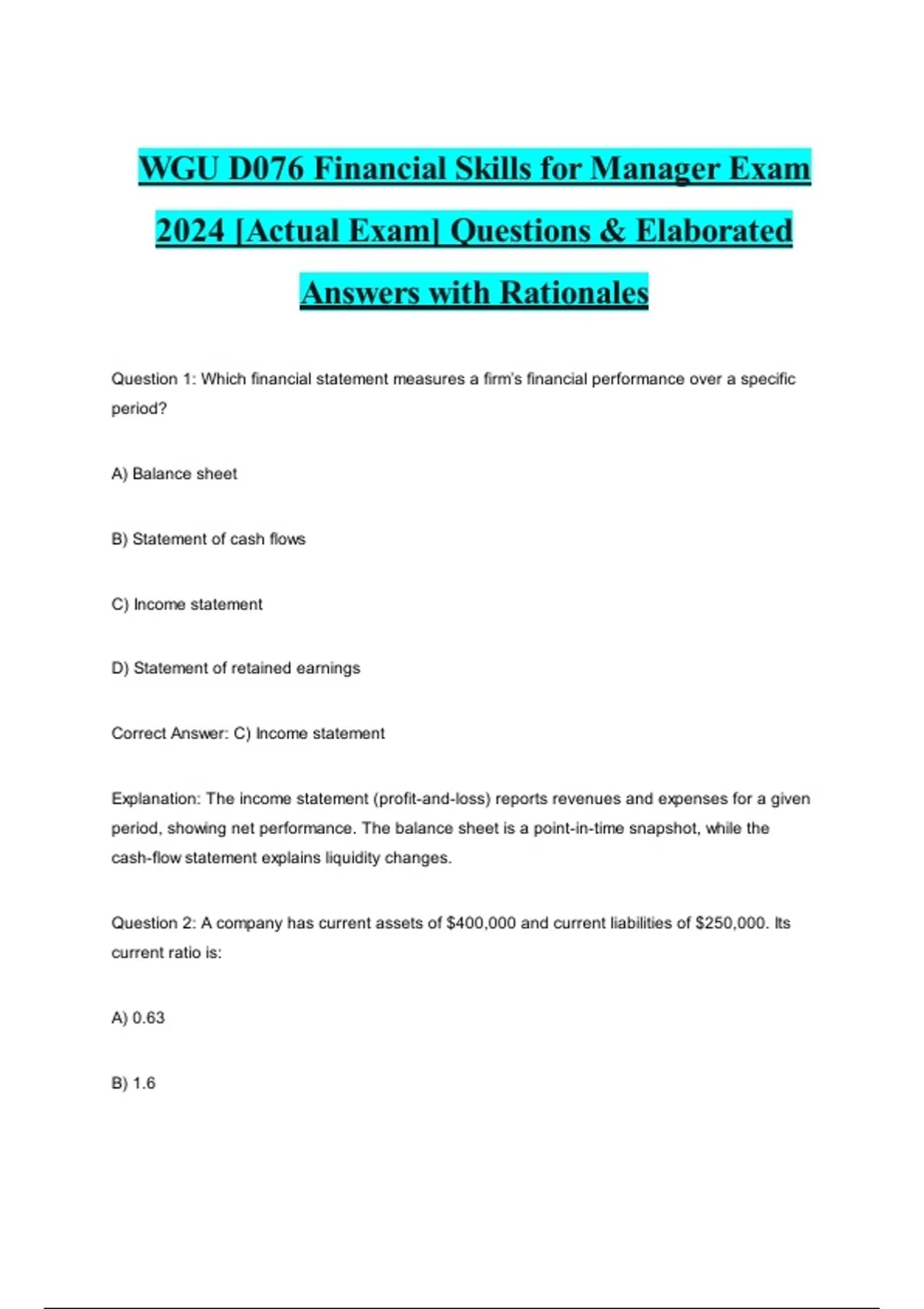 Question 1: Which financial statement measures a firm’s financial performance over a specific
