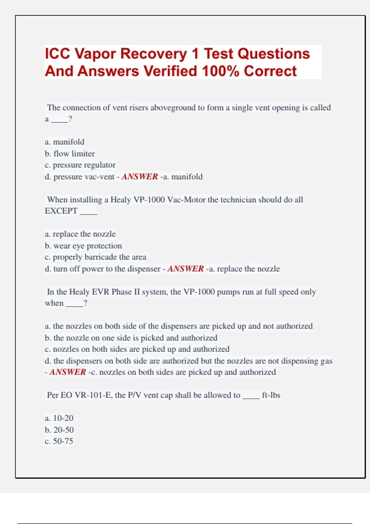 d. nozzle dispensing shut-off test - ANSWER -d. nozzle dispensing shut-off test