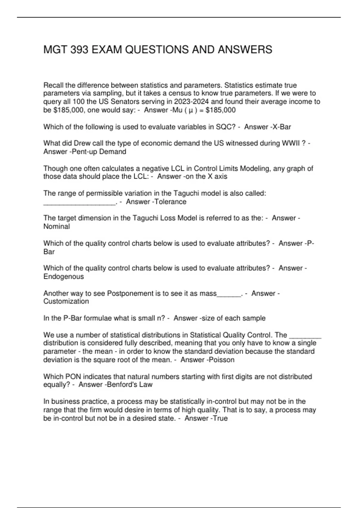 MGT 393 EXAM QUESTIONS AND ANSWERS
