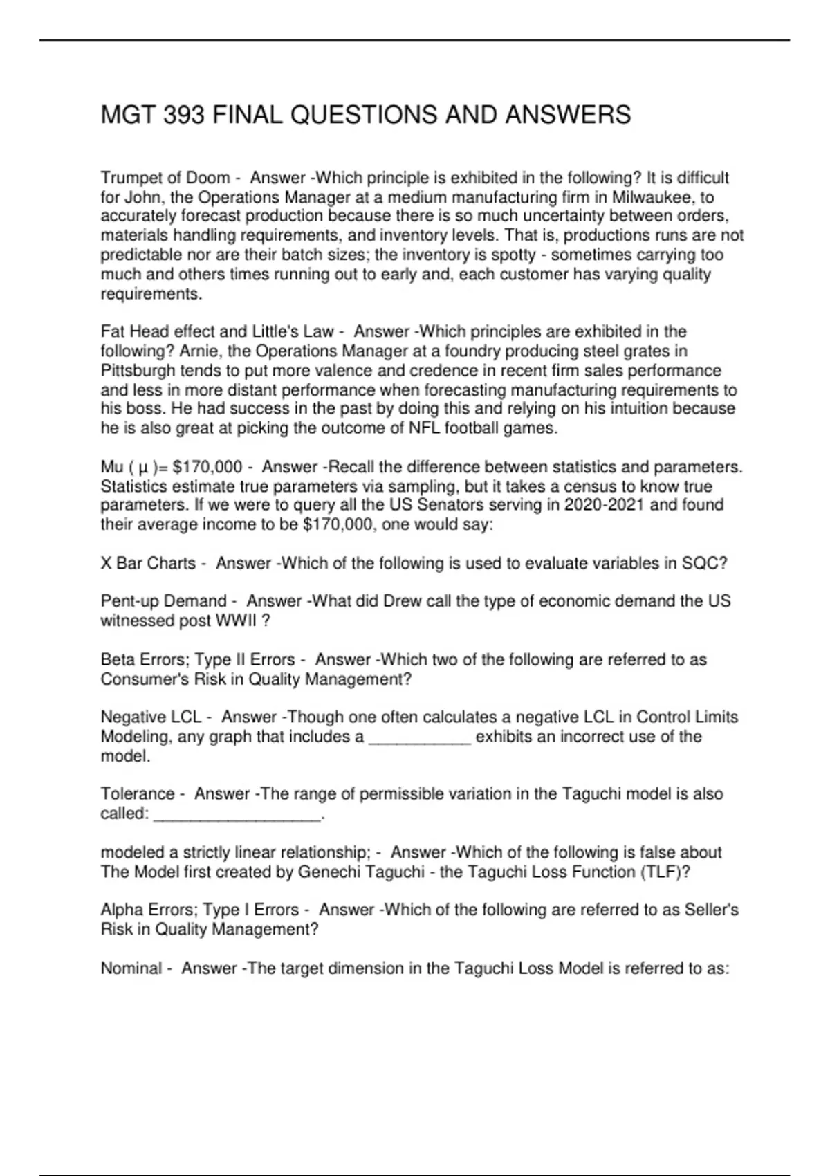 MGT 393 FINAL QUESTIONS AND ANSWERS