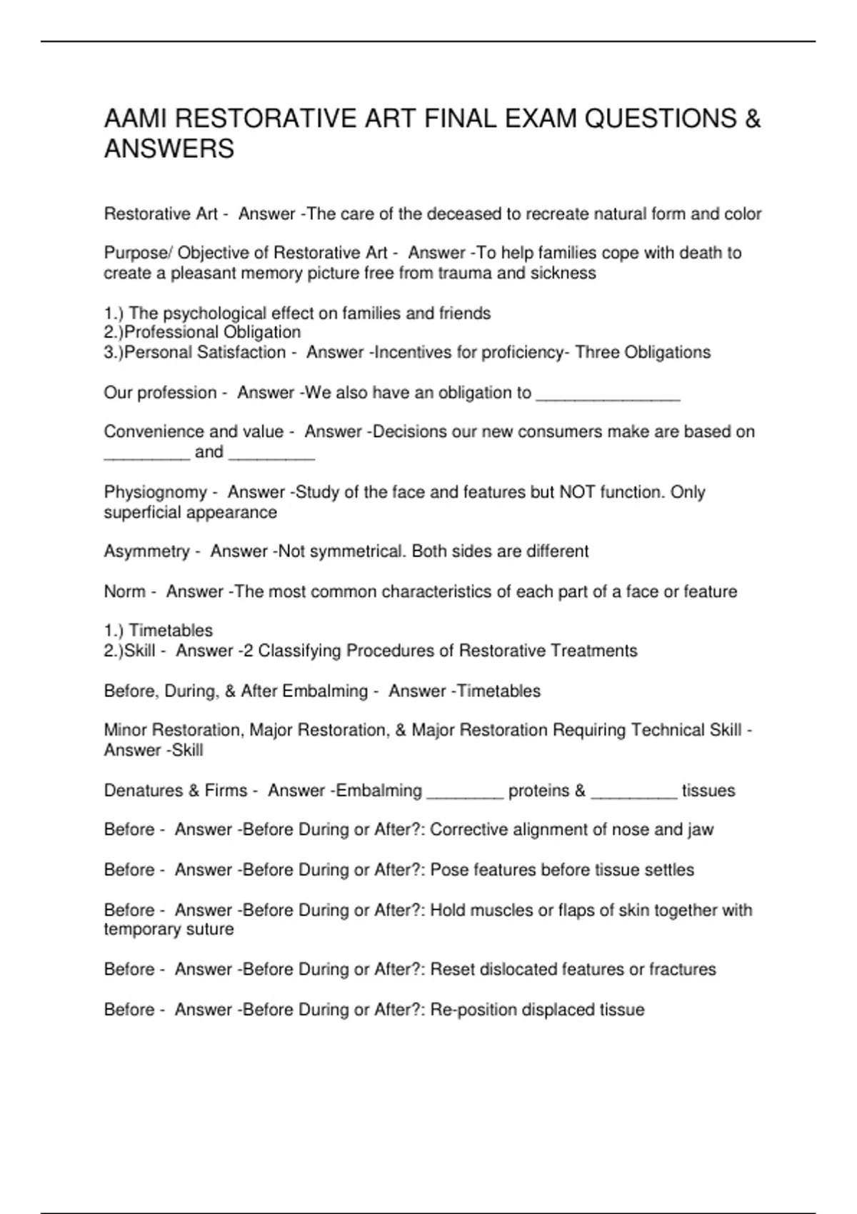 Restorative Art - Answer -The care of the deceased to recreate natural form and color