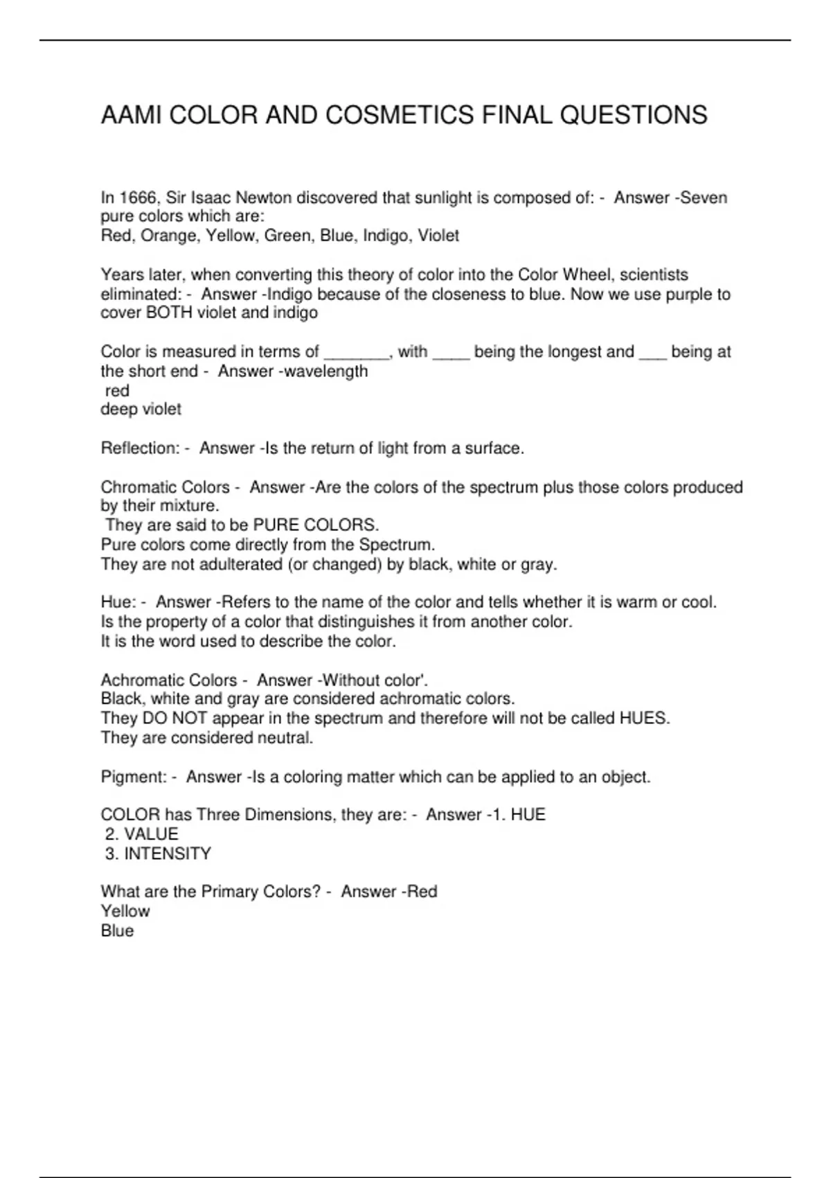 AAMI COLOR AND COSMETICS FINAL QUESTIONS