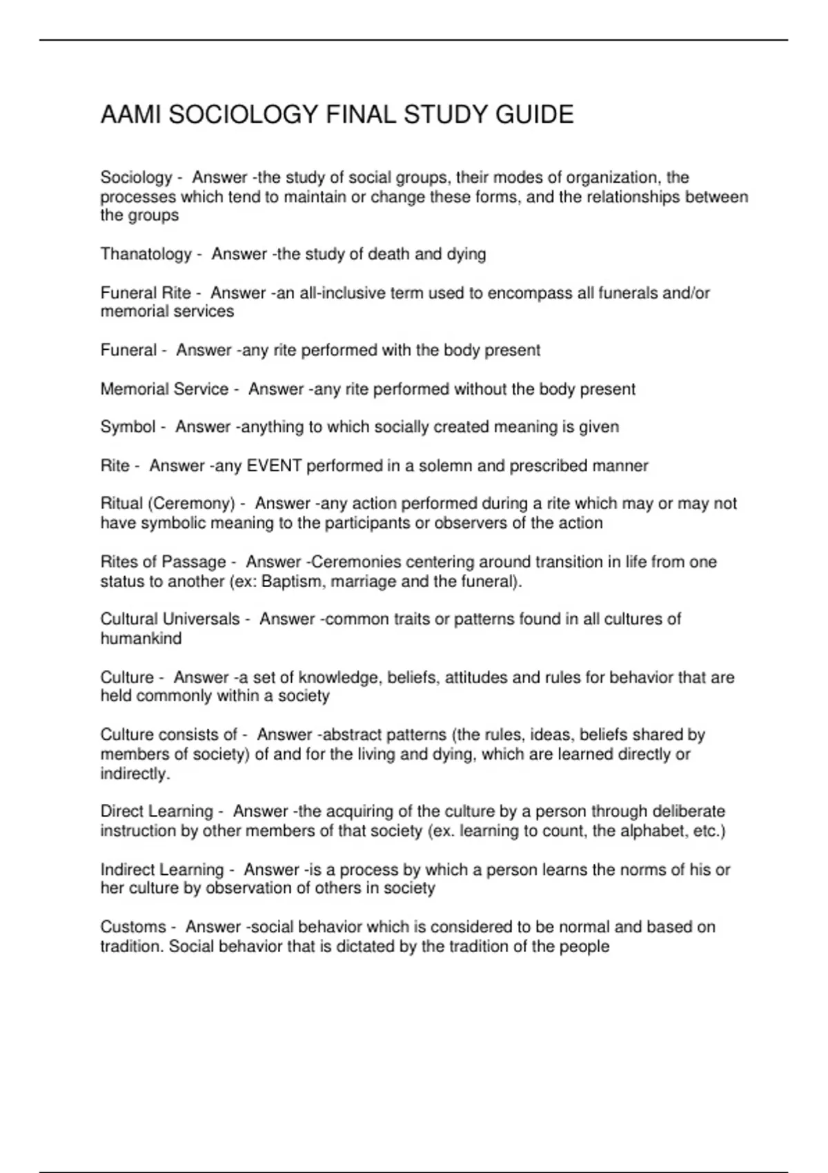 AAMI SOCIOLOGY FINAL STUDY GUIDE