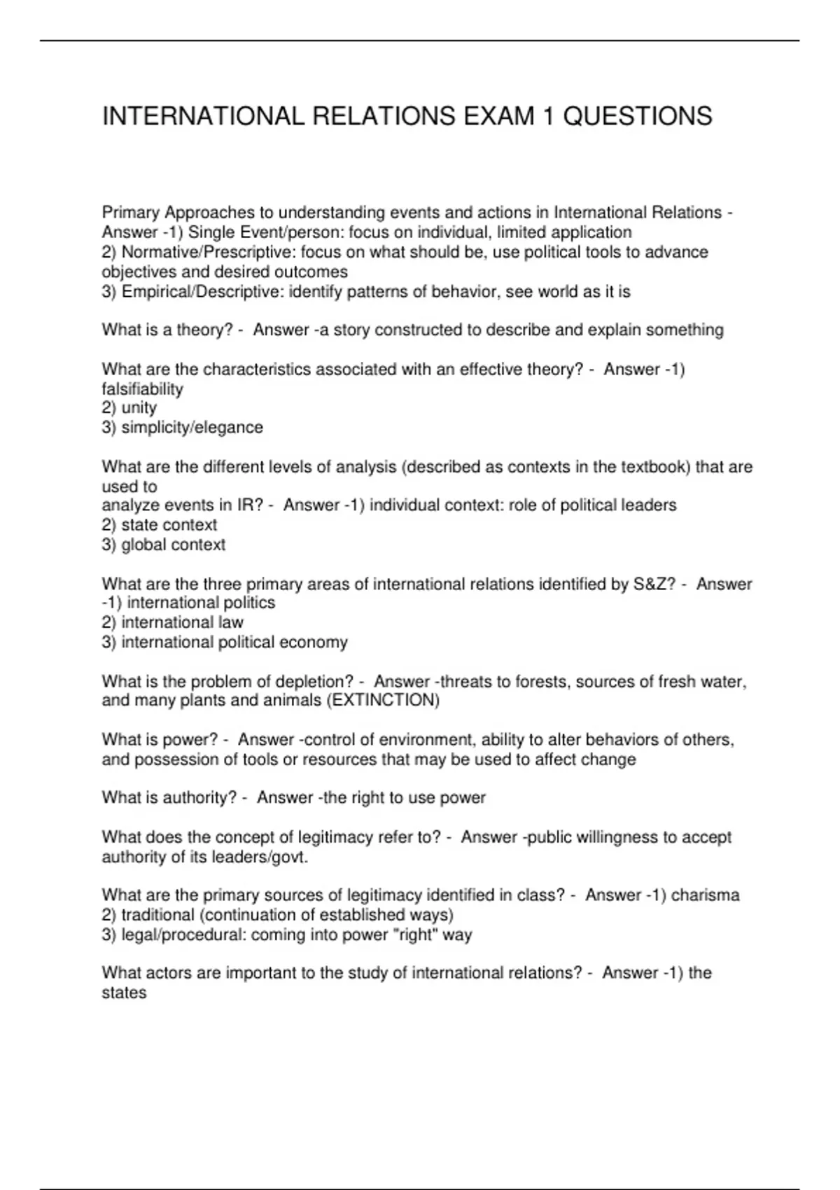 INTERNATIONAL RELATIONS EXAM 1 QUESTIONS
