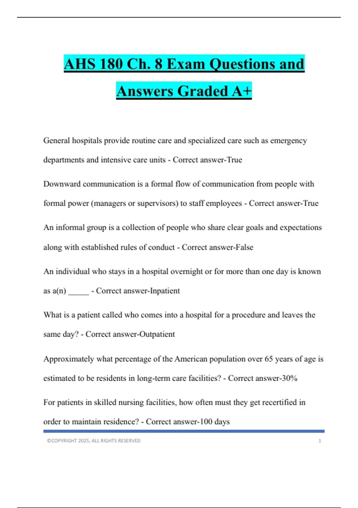 AHS 180 Ch. 8 Exam Questions and Answers Graded A+