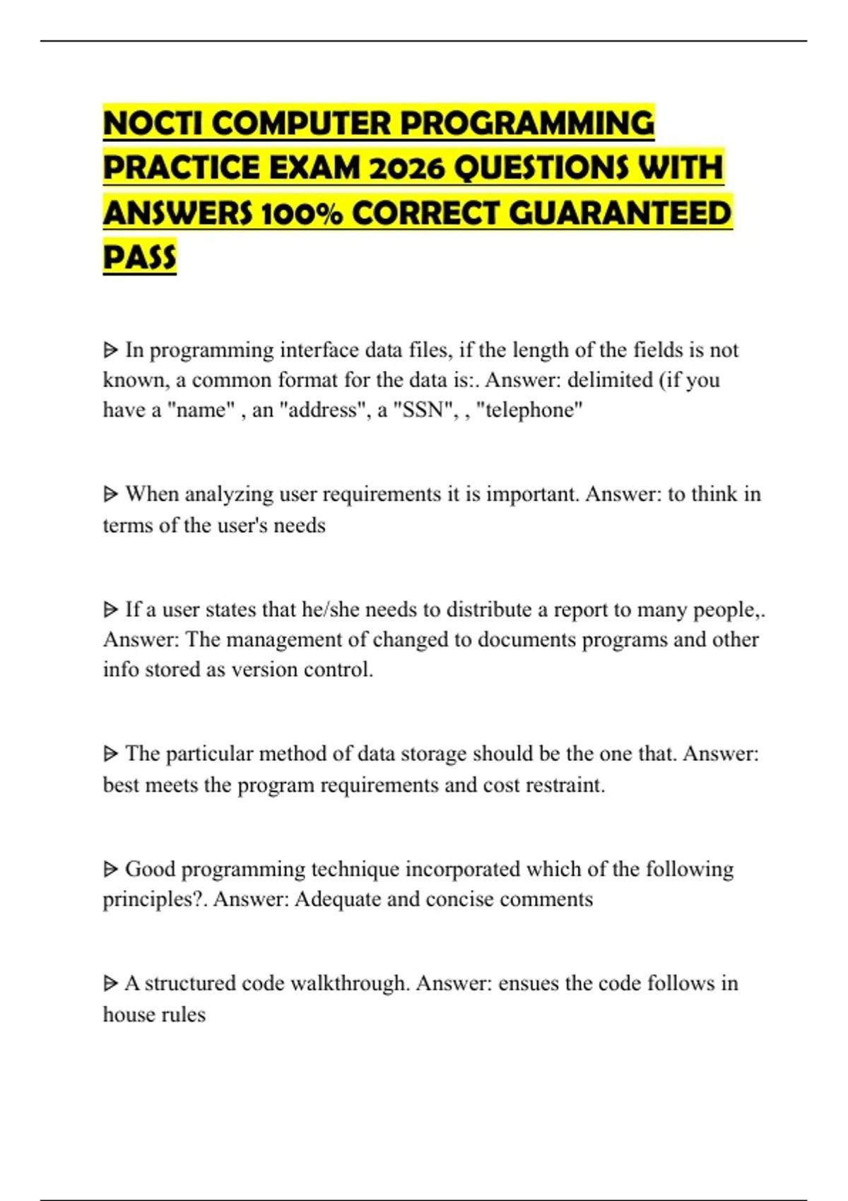 NOCTI COMPUTER PROGRAMMING PRACTICE EXAM 2026 QUESTIONS WITH ANSWERS 100% CORRECT GUARANTEED PASS