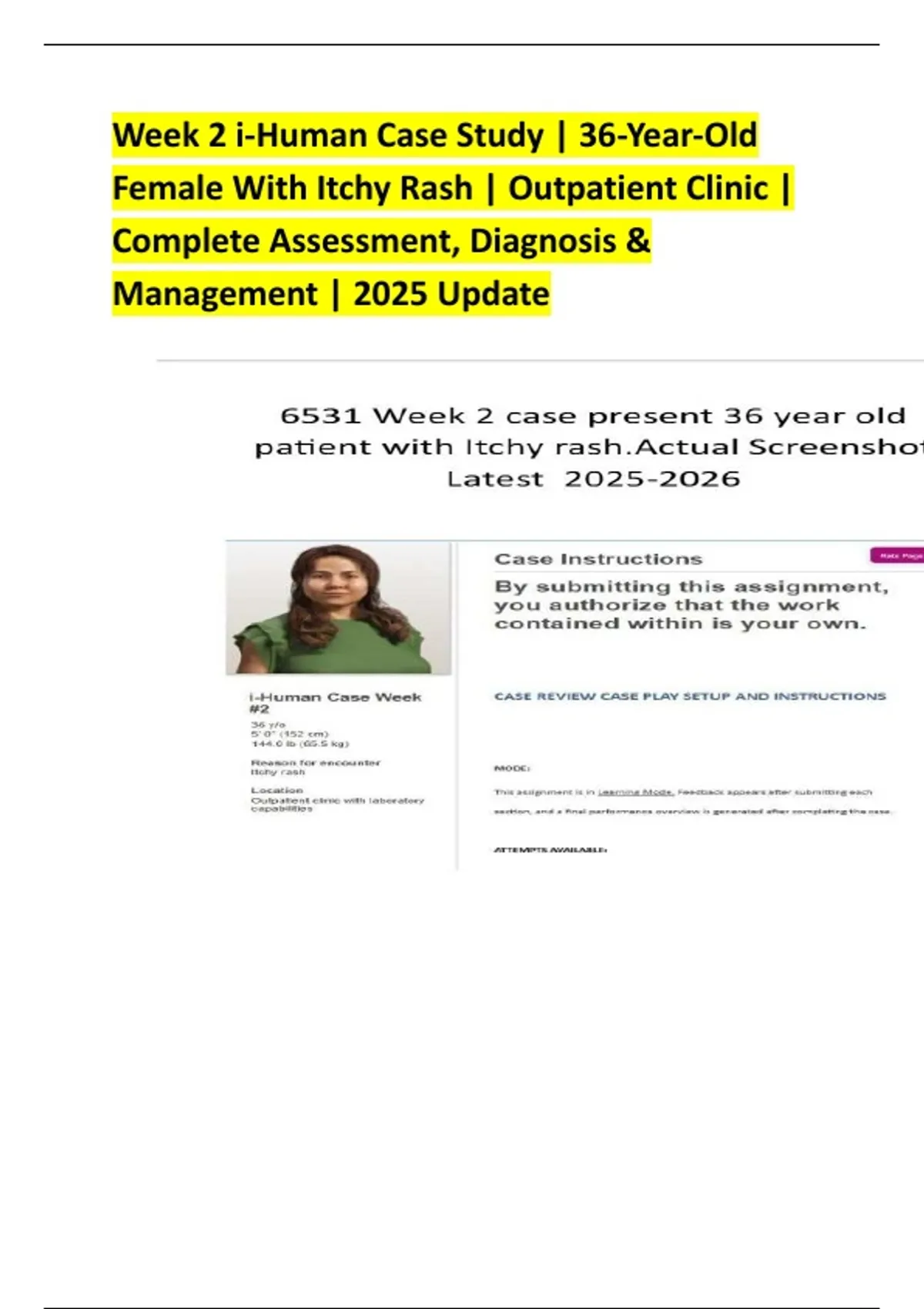Setting: Outpatient primary care / urgent care clinic (Week 2 i-Human case)