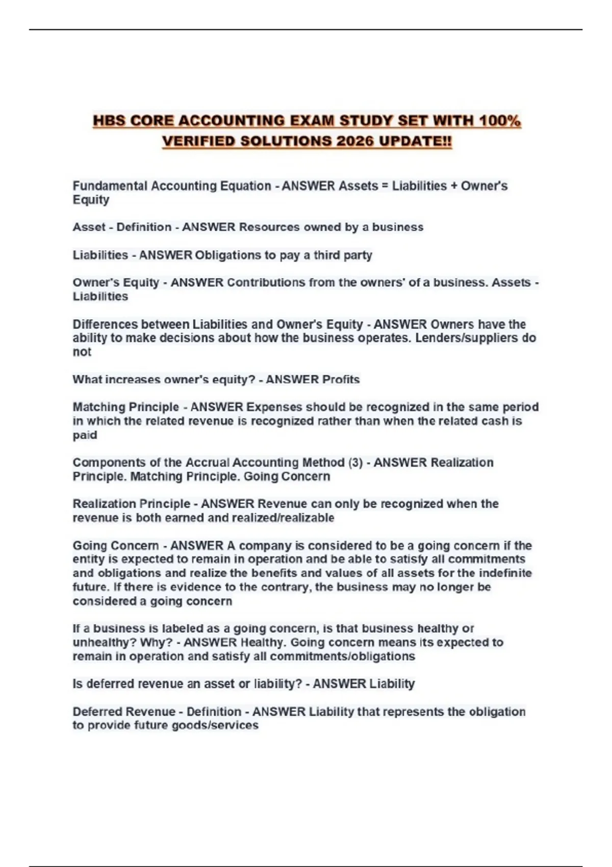 HBS CORE ACCOUNTING EXAM STUDY SET WITH 100% VERIFIED SOLUTIONS 2026 UPDATE!!...