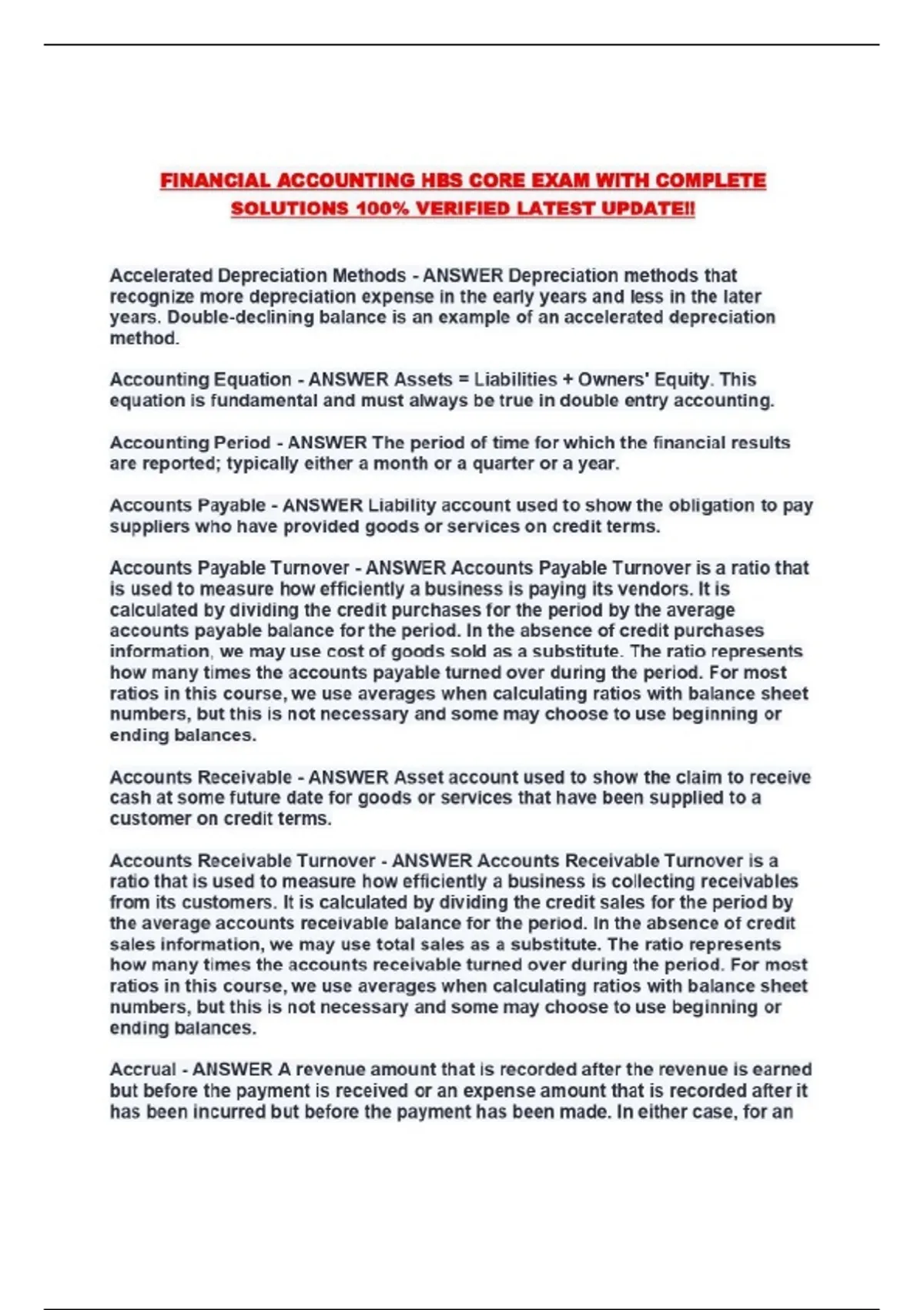 FINANCIAL ACCOUNTING HBS CORE EXAM WITH COMPLETE SOLUTIONS 100% VERIFIED LATEST UPDATE!!...