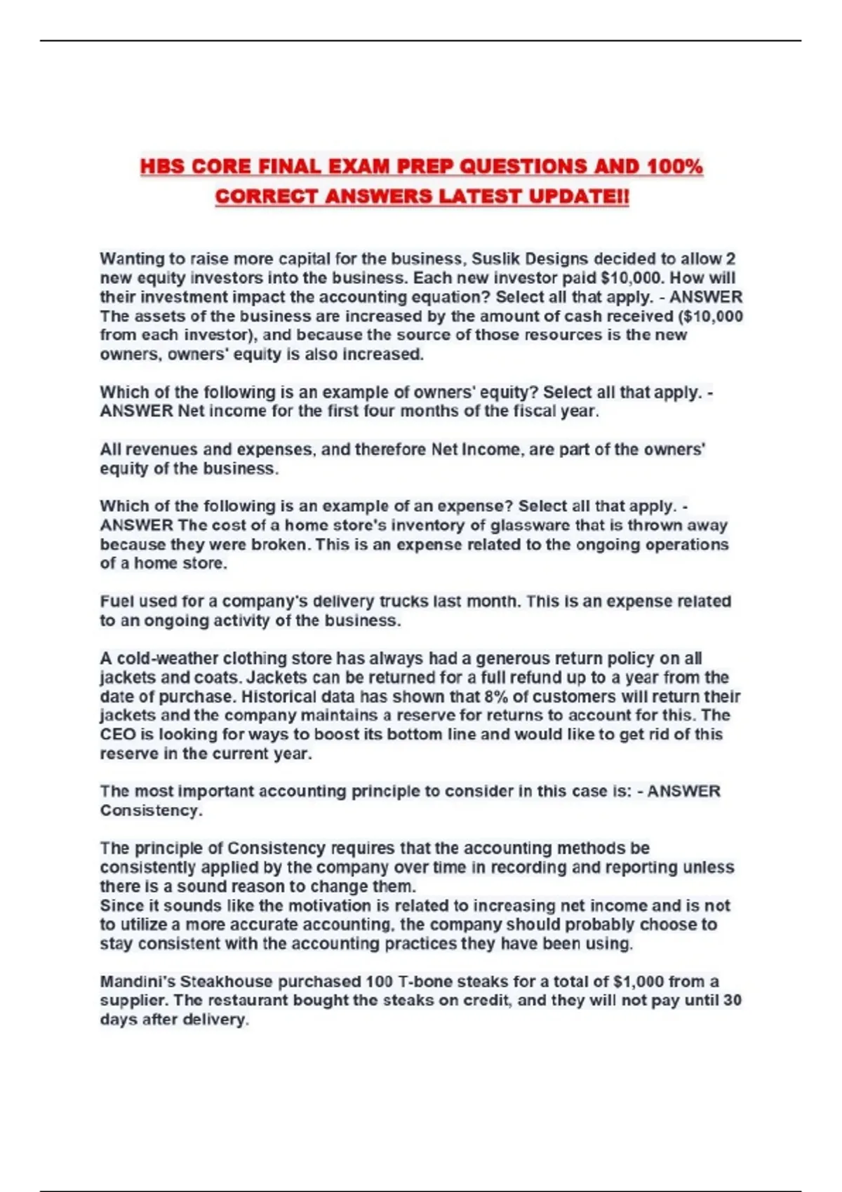 HBS CORE FINAL EXAM PREP QUESTIONS AND 100% CORRECT ANSWERS LATEST UPDATE!!...