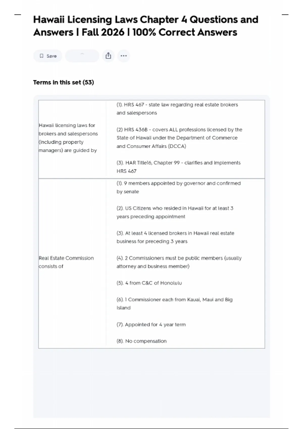 Hawaii Licensing Laws Chapter 4 Questions and Answers | Fall 2026 | 100% Correct Answers