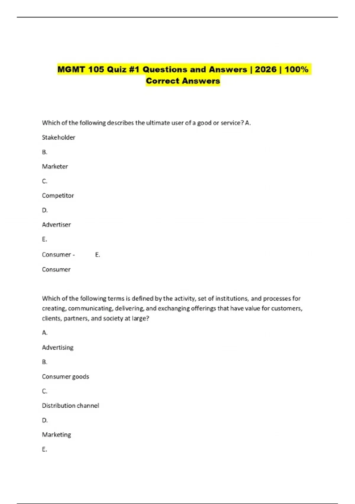 mgmt 105 quiz 1 questions and answers 2026 10