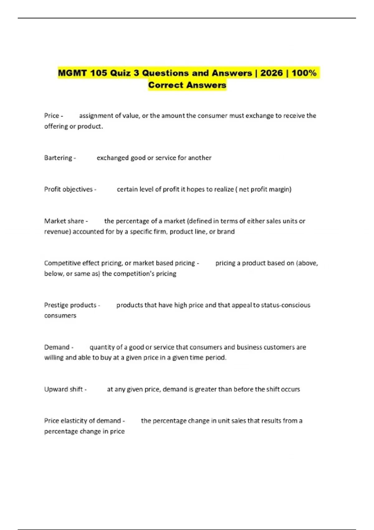 MGMT 105 Quiz 3 Questions and Answers | 2026 | 100% Correct Answers
